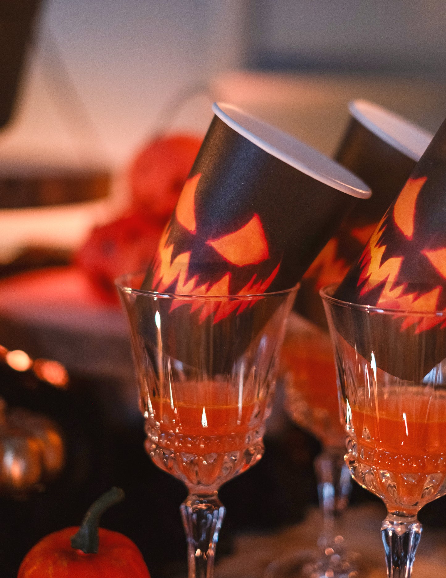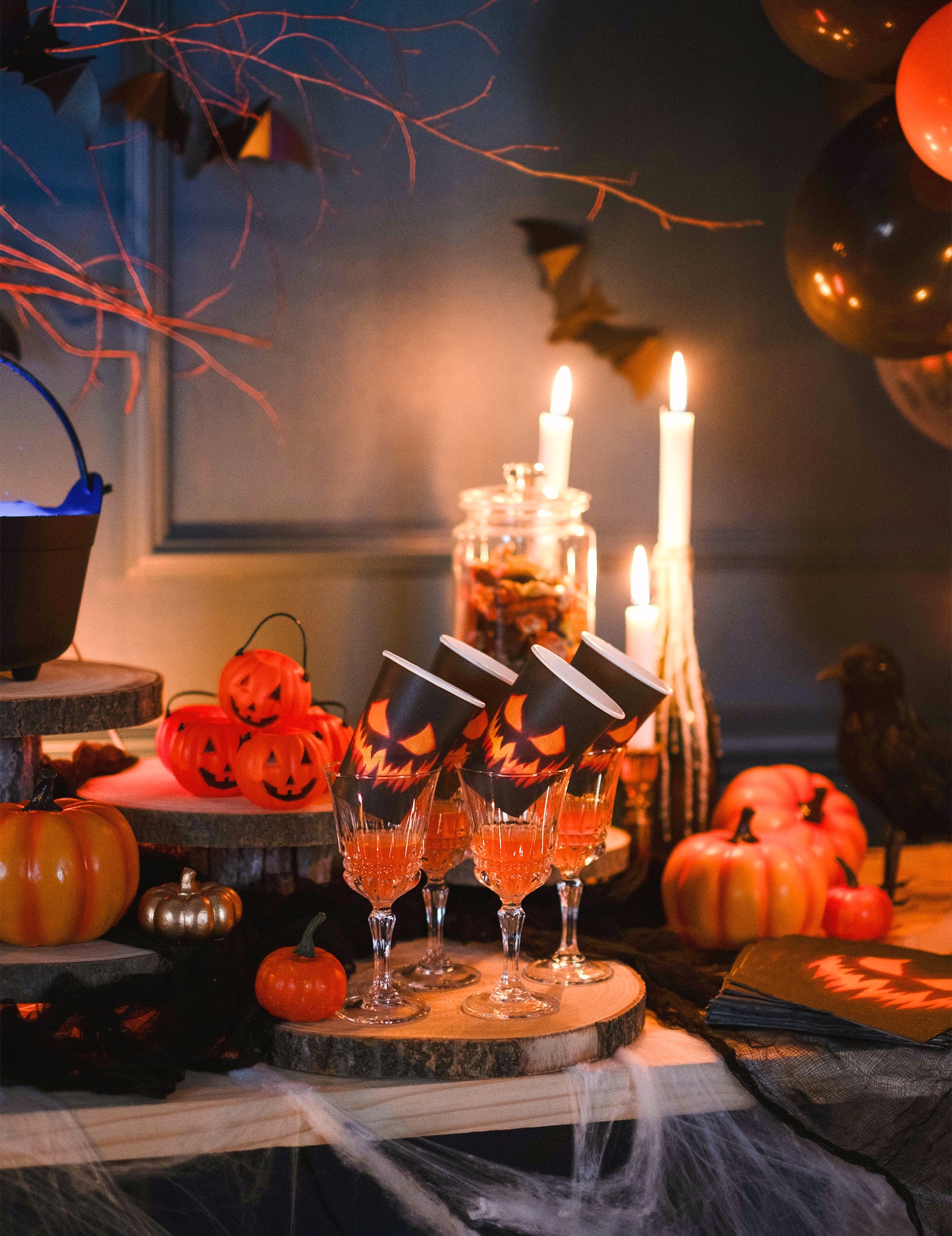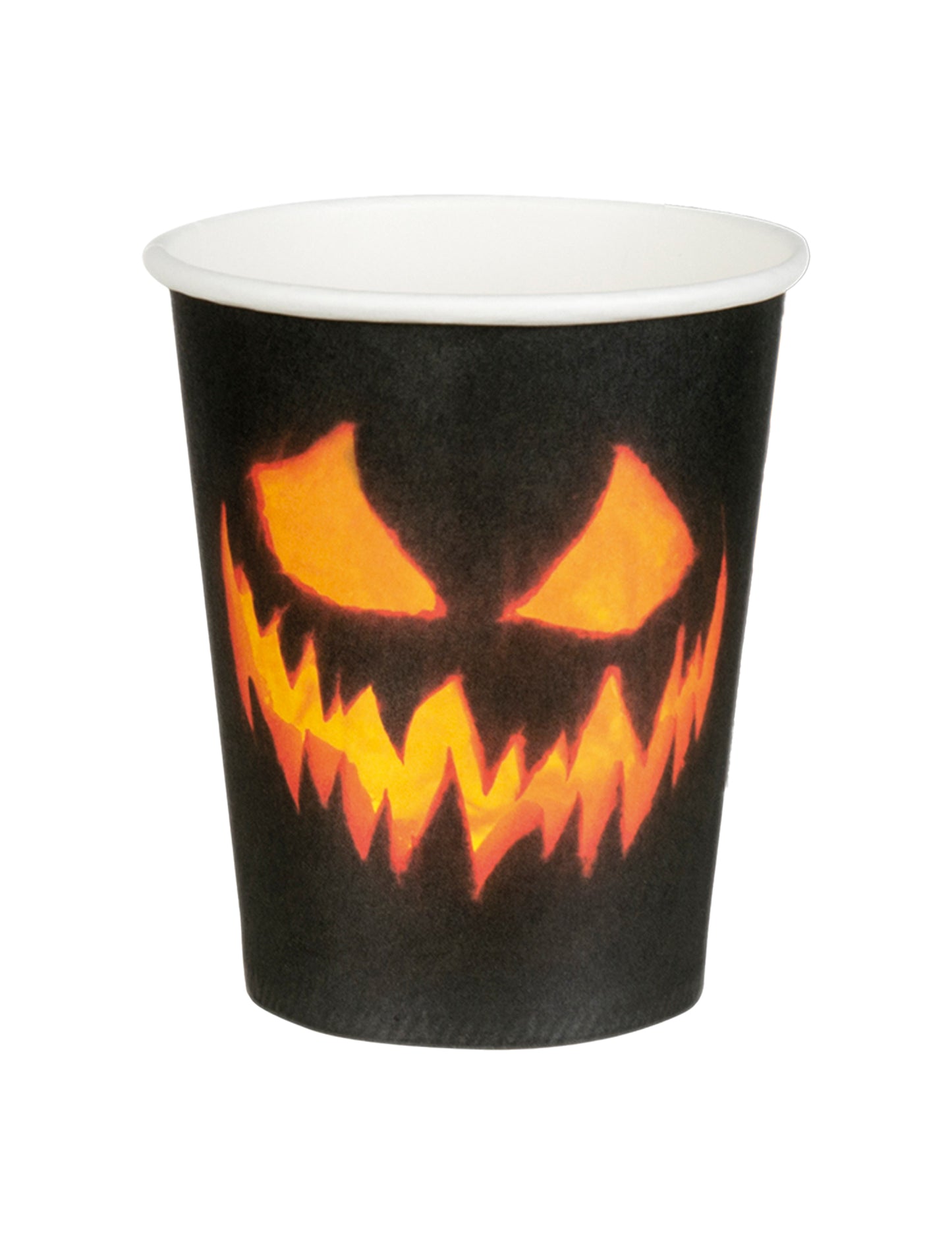 Tieto kartónové okuliare s ohrozujúcim tekvicovým motívom ponoria svojich hostí do sveta Halloweenu z prvého dúšku. Kontrast medzi oranžovou ilustráciou a čiernym pozadím vytvára silný vizuálny efekt, ktorý je ideálny pre pohlcujúcu tabuľku večierkov. Ideálne na dokončenie riadu na noc vzrušenia.