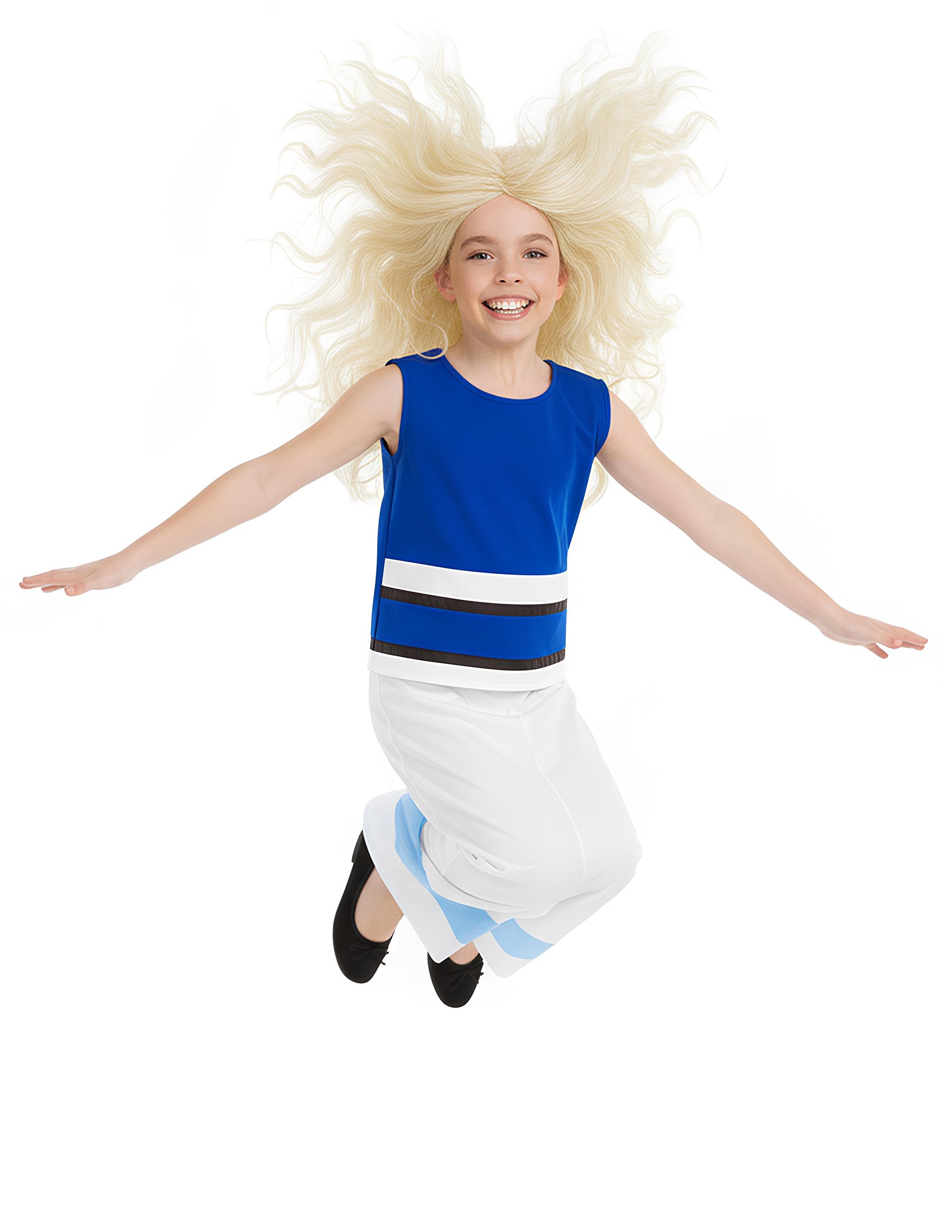 Tento oficiálne licencovaný kostým Asterixa a Obelixa Falbala pre deti obsahuje top a sukňu. Top s krátkym rukávom je modrý a zdobený čiernobielym lemom, aby ladil s vzhľadom tohto očarujúceho galského dievčaťa. Dlhá, rozšírená sukňa zdobí tyrkysový pás, ktorý dokonale dopĺňa tento krásny kostým pre Abraracourcixovu neter. Premeňte svoju dcéru na krásne galské dievča s týmto kostýmom Falbala na karneval alebo kostýmovú párty s tematikou Asterixa a Obelixa.