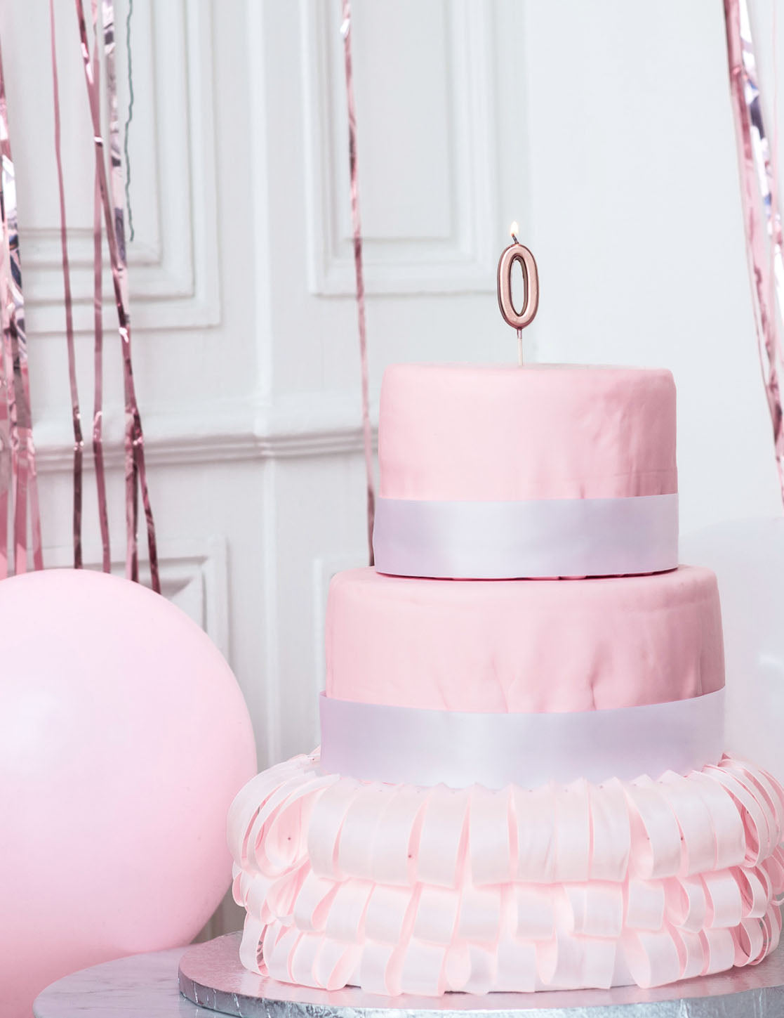 Narodeninová sviečka číslo 0 z ružového zlata 4,3 cm kovový efekt