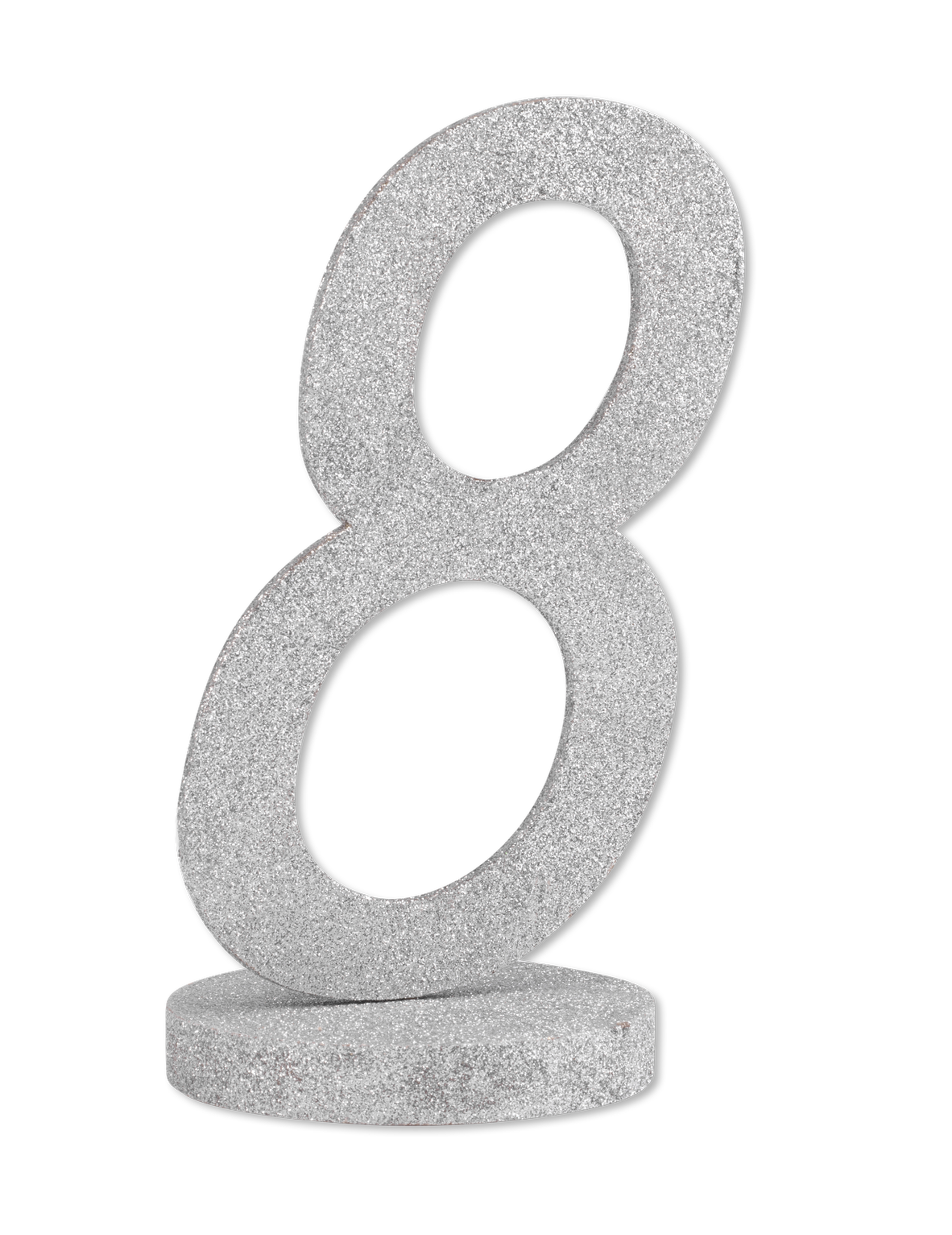 Dodajte svojej dekorácii štipku trblietky s týmto stredový ornament tvarovaný číslo 8Tento 20-dielny doplnok je vyrobený z dreva s trblietavou striebornou povrchovou úpravou. cm Výška spočíva na okrúhlom podstavci pre dokonalú stabilitu. Ideálne ako značka na stôlto zlepší atmosféru trblietavá svadba alebo slávnostné narodeniny.