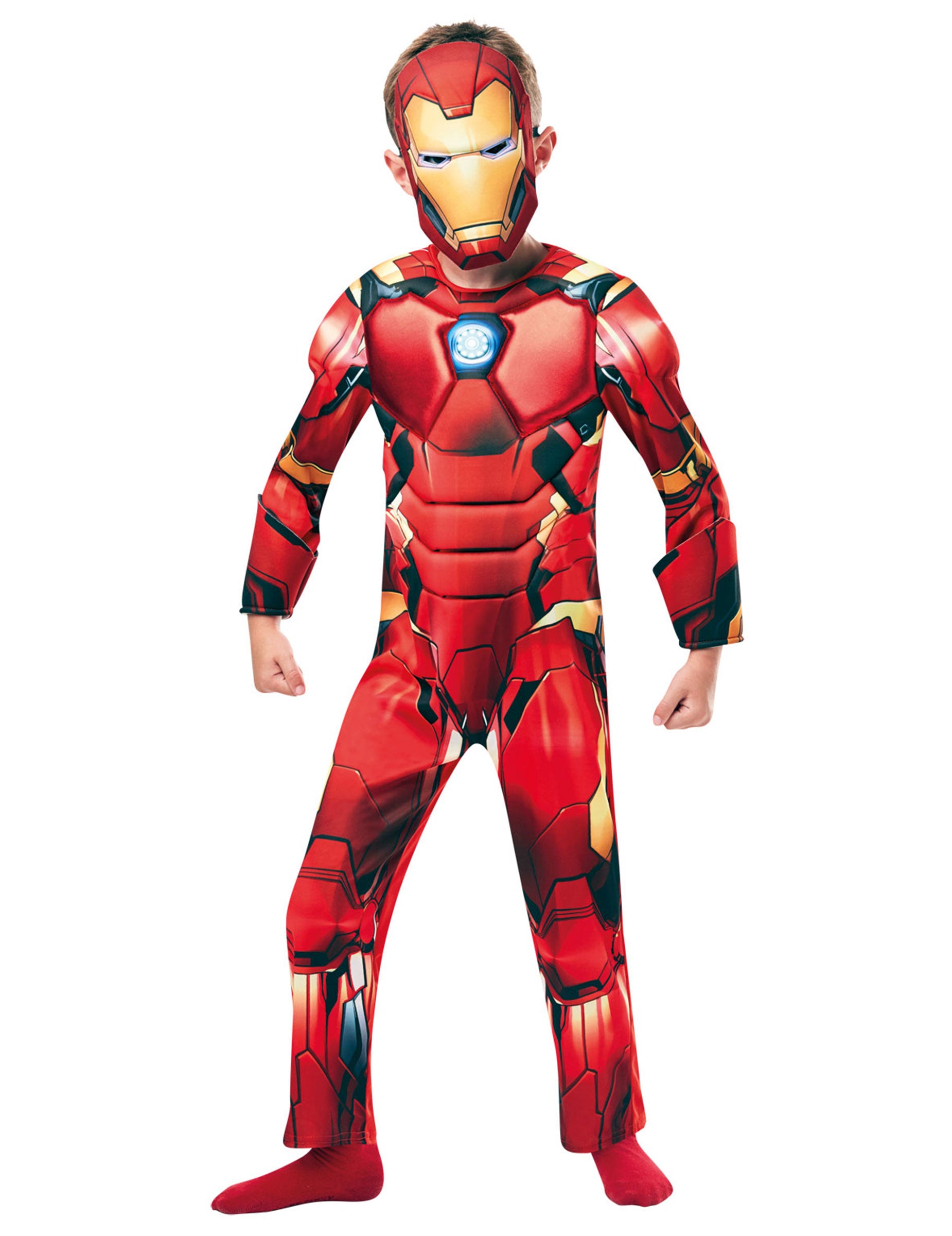 Ce déguisement deluxe Iron Man pour enfant, est sous licence officielle Marvel. Il est composé d'une combinaison rembourrée imprimée sur le recto, et d'un demi-masque en plastique. La combinaison rembourrée sur les bras et le torse est de couleur rouge et or. Les motifs représentent l'armure de ce super-héros Marvel à l'avant et est de couleur rouge à l'arrière. Elle est pourvue d'attaches en velcro, qui permettent de la revêtir facilement. Pour combattre le crime et faire régner la justice, tout en préservant votre identité, un demi-masque qui est la copie conforme du casque de ce héros membre des Avengers, vient compléter ce costume et le rendre plus réaliste. Votre apprenti héros sera fier de revêtir ce costume Iron Man de luxe, lors du Carnaval ou d'une soirée sur le thème Super héros Marvel.