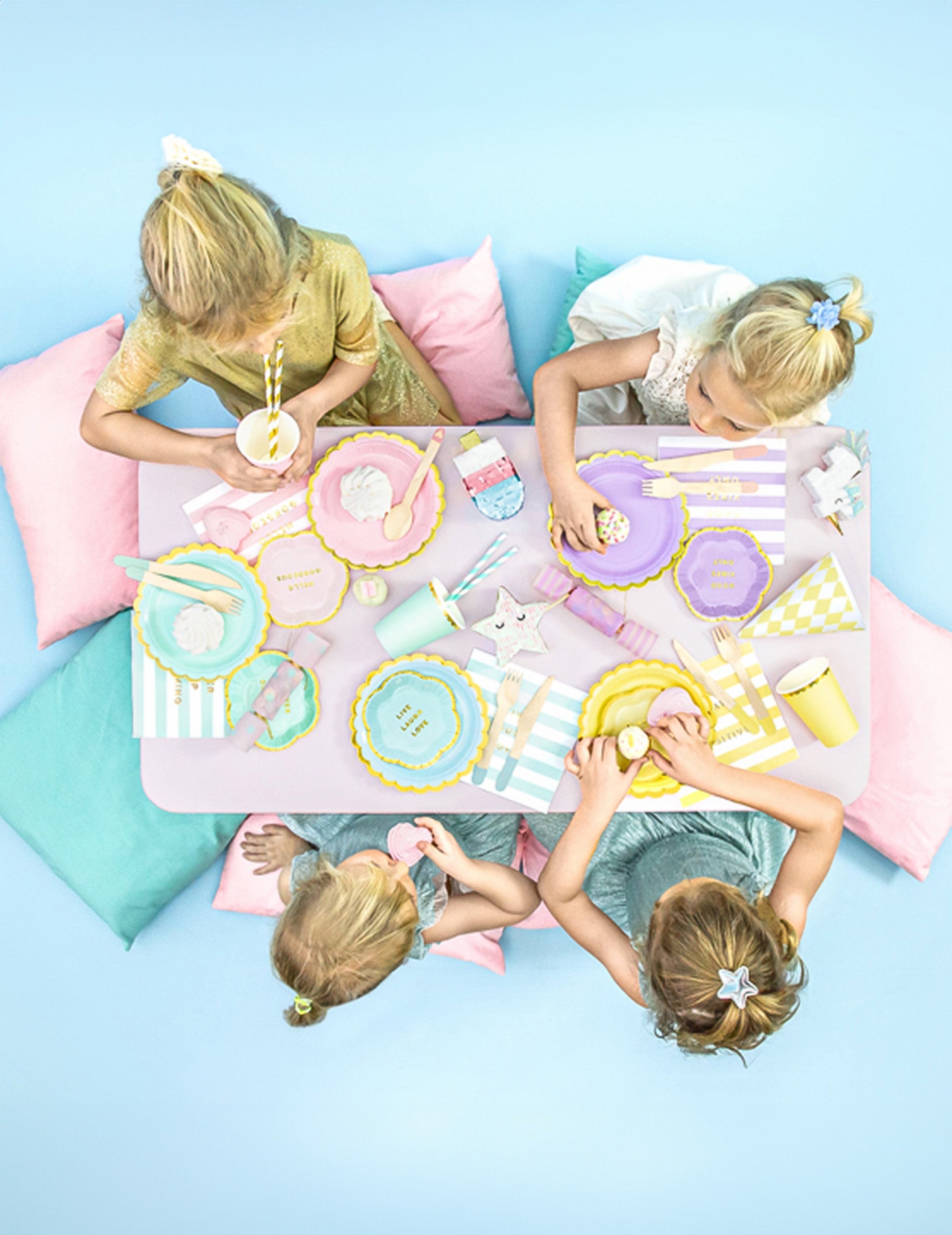 Táto sada 6 kusov malé taniere Vyrobené z kartónu, má jemný nebesky modrý odtieň. Meria 18. cm, tieto dezertné taniere Tieto sú ozdobené zlatým vrúbkovaným okrajom pre elegantný efekt. malé taniere Sú decentné aj elegantné, vhodné na všetky slávnostné príležitosti. Sú nevyhnutným doplnkom... manželstvo alebo a pastelové narodeniny plný šarmu.