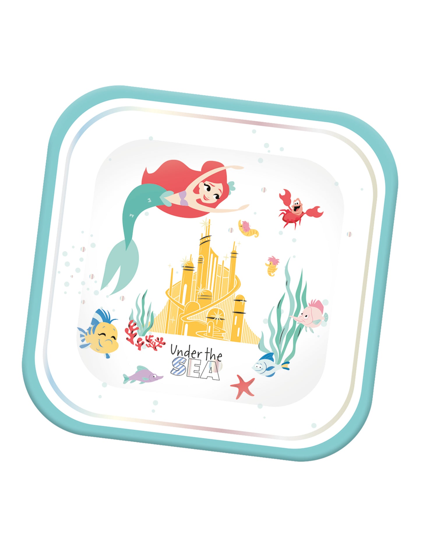 Tieto 4 prémiové dosky Ariel sú na oficiálnej licencii. Kartónové dosky sú zdobené obrázkom z karikatúry Malej morskej panny. Okraj dosiek je modrá. Štvorcových tvarov merajú približne 24 x 24 cm. Tieto prémiové taniere Ariel budú ideálne na dekoráciu témy Disney narodeninovej oslavy.