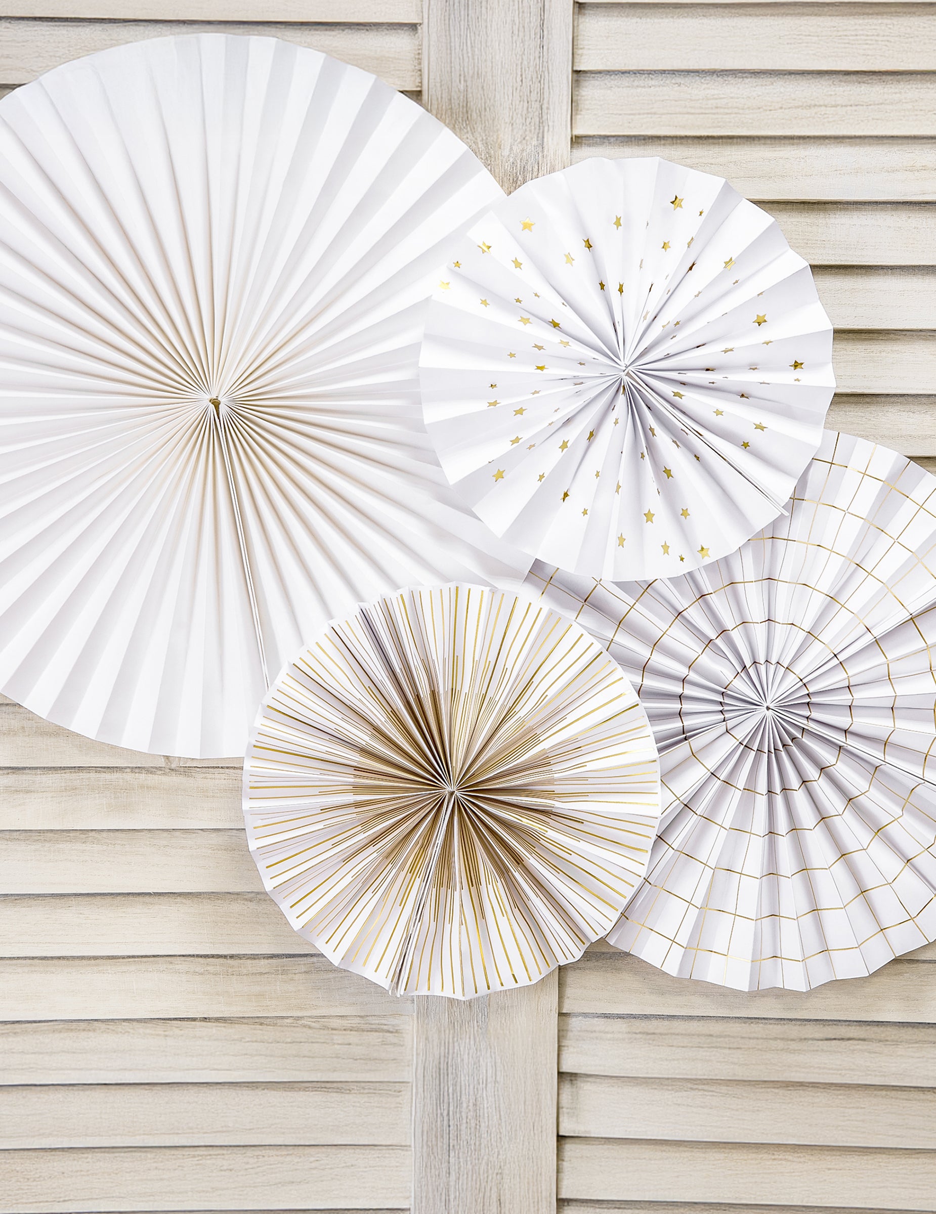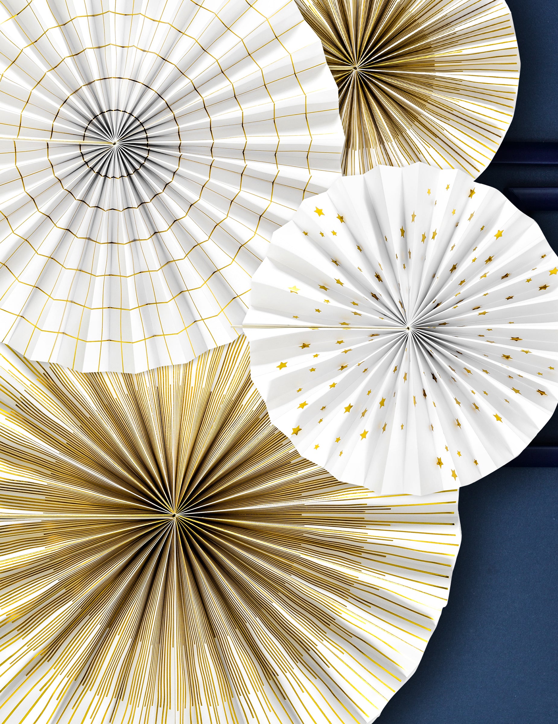 4 dekoratívne a zlaté papierové rozety 23, 32, 40 cm