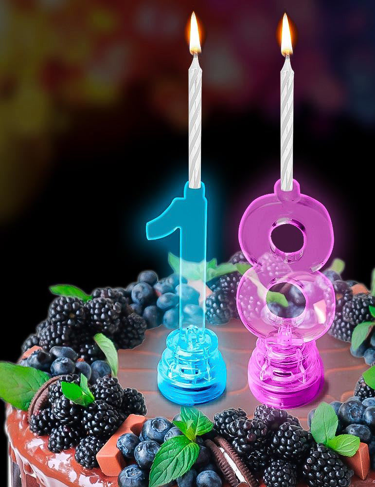 Táto časť pozostáva z sviečok číslo 1 a 4. Číslo 1 je v priehľadnom plaste a rozsvieti sa 5 rôznych farieb: modrá, žltá, zelená, ružová a červená. Má umiestnenie na vrchu na umiestnenie sviečky. 4 sviečky sú v bielom vosku, môžete ich umiestniť na plánovanú základňu. Táto súprava na sviečky bude ideálna na jasné narodeniny!
