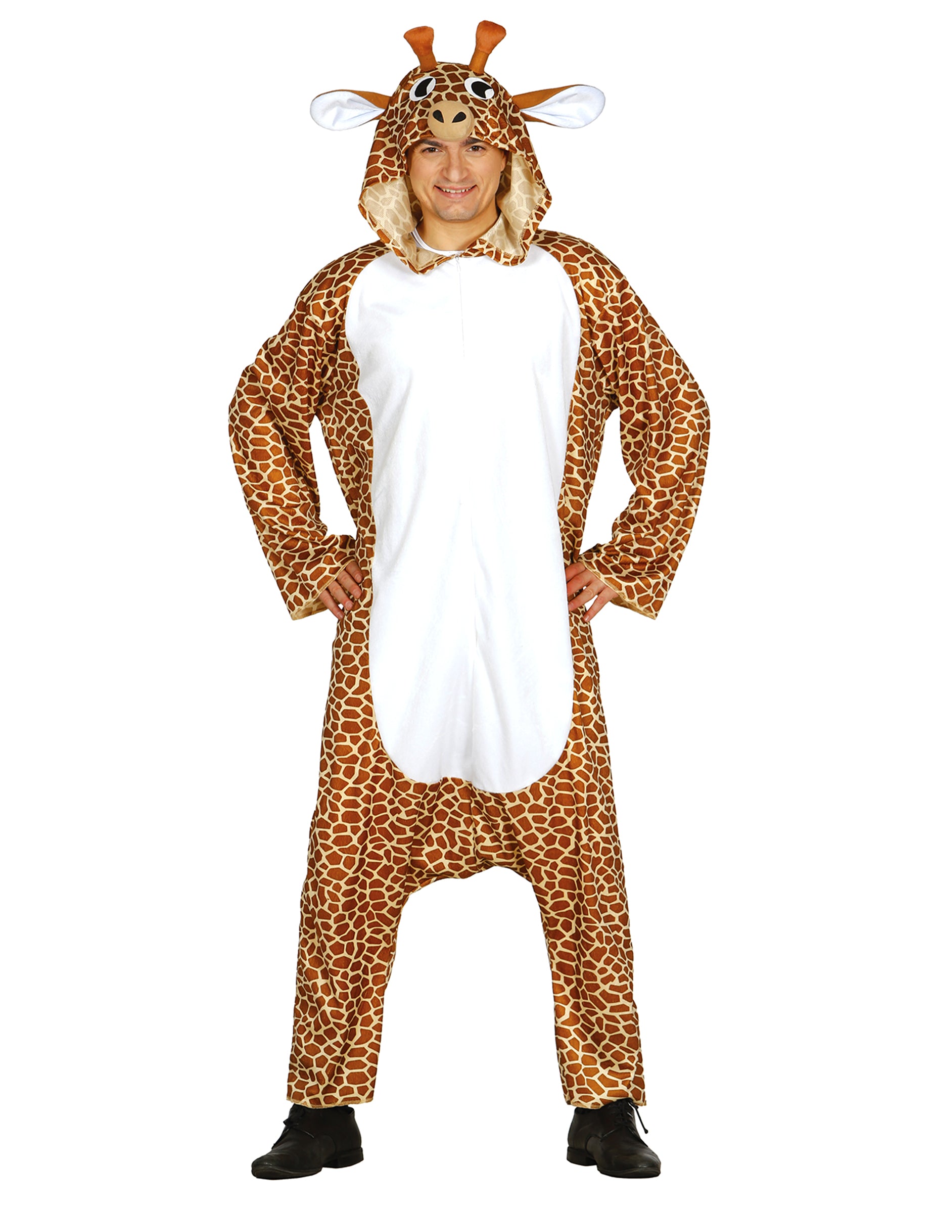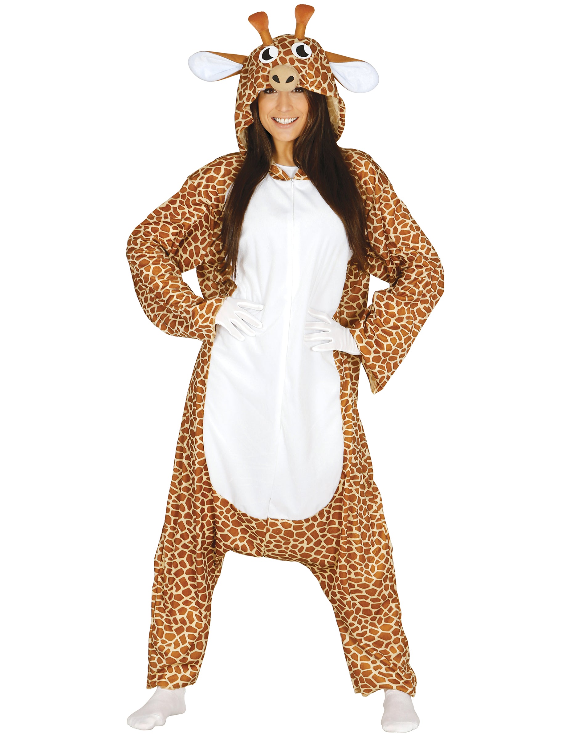 Tento kostým žiraf pre dospelých je kombináciou s kapotou. Táto široká kombinácia je vytlačená s kabátom žiraf s bielym bruchom. Je vybavený zipsom na prednej strane, aby ho dal a ľahko ho zatvoril. Má tiež kapucňu, ktorú prekonala žirafská hlava pre predpokladaný štýl zvierat! Tento kostým žirafy bude ideálny pre večeru zvieraťa alebo humoru!