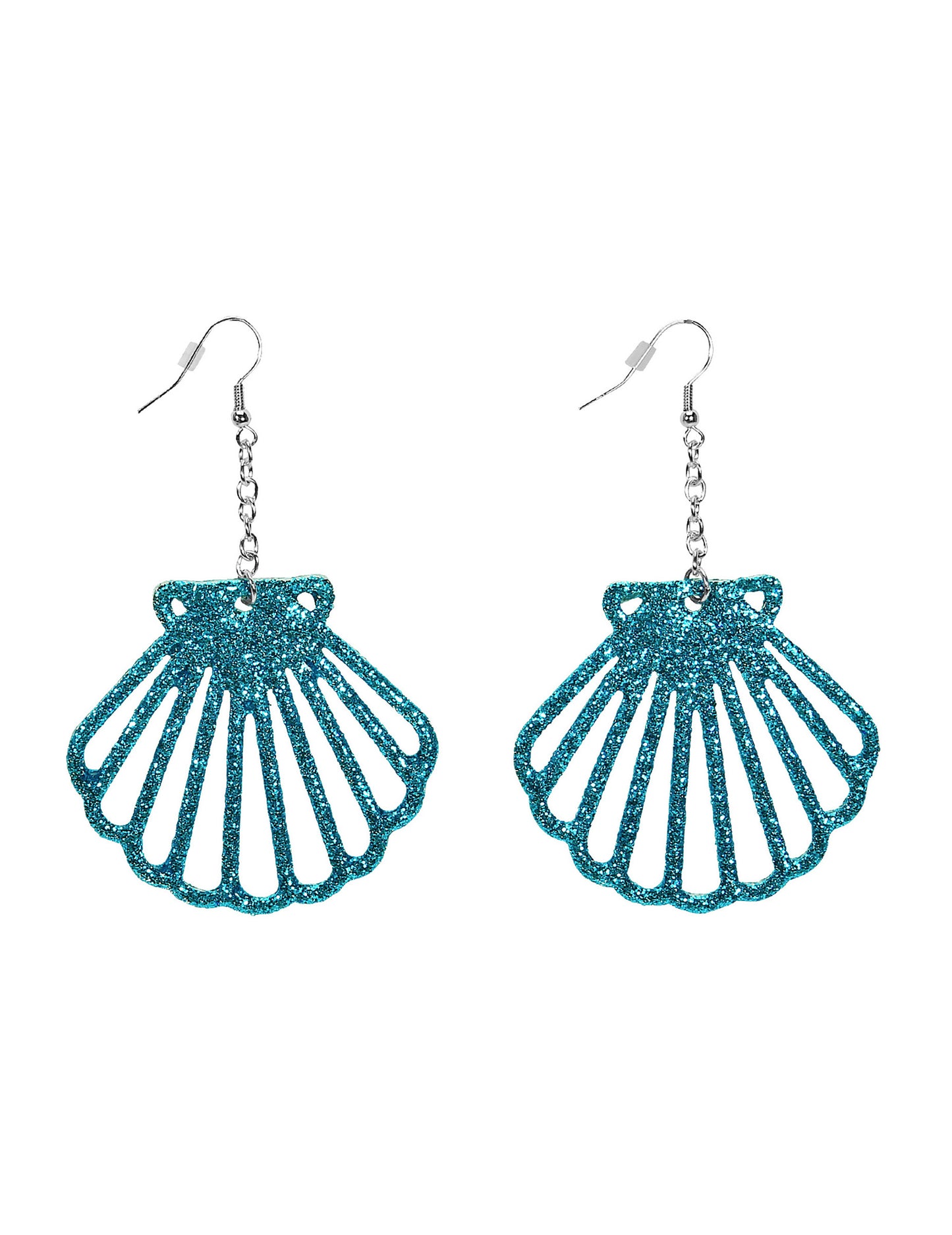 Tieto dospelé náušnice predstavujú škrupiny. Sú pokryté modrými trblietkami. Tieto kučery sa nosia pomocou háčika. Budú ideálne na dokončenie kostýmu morskej panny pre karneval alebo párty na tému mora.