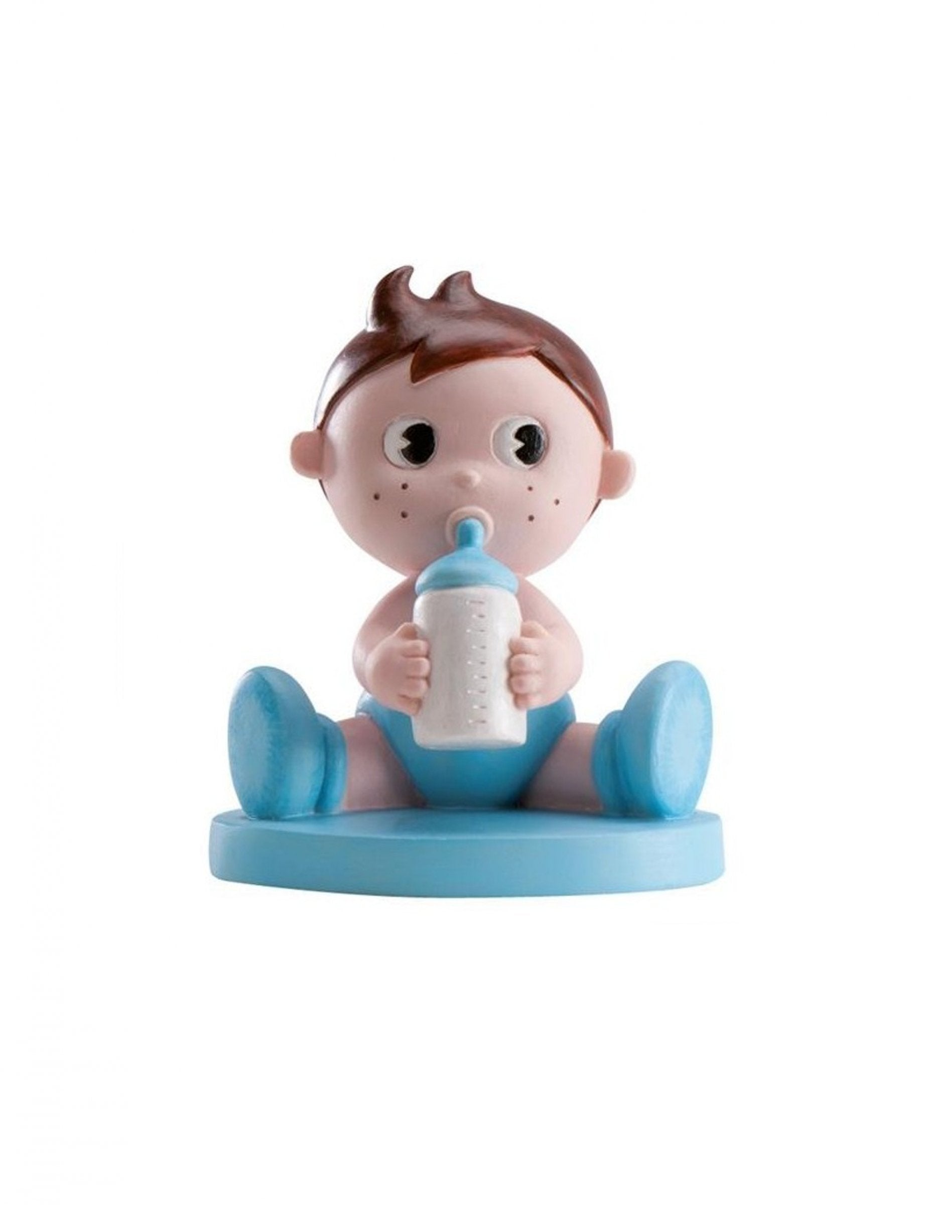 Dodajte svojej udalosti nádych sladkosti s týmto figúrka malý chlapec drží svoju detskú fľašu. Vyrobené zo živice a s rozmermi 10 cm, Táto vec je ideálna na ozdobenie stola alebo torty. figúrka bude ideálnym doplnkom na vylepšenie detská oslava alebo oslavu narodenín.