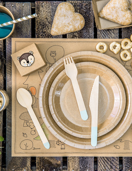 Tieto modrý drevený príbor dodať autentický a farebný nádych vašim vonkajším jedlám alebo témam zvieratá z lesaVyberte si tieto pokryté Originálne dizajny pre elegantný a prirodzený vzhľad na vašich recepciách.