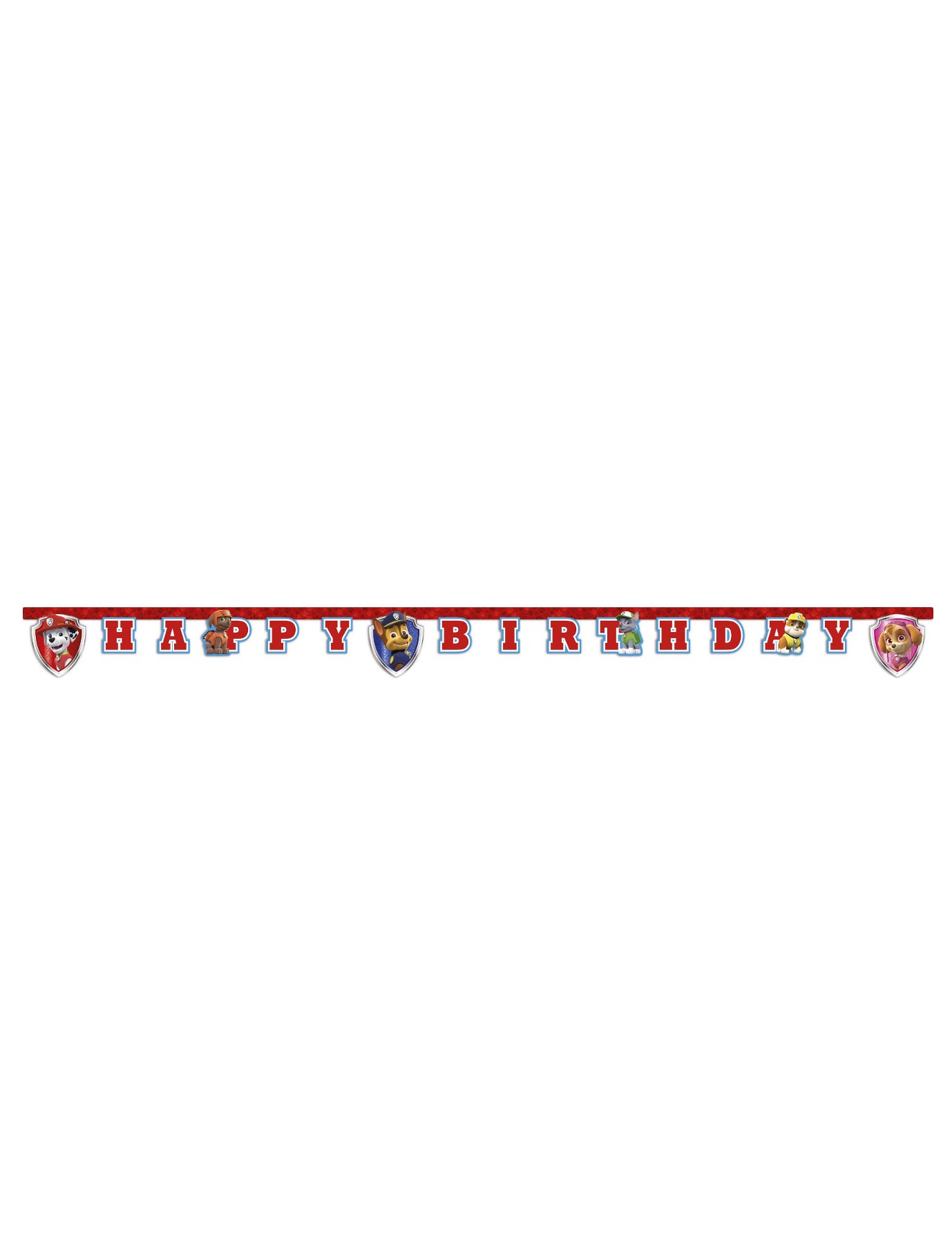 Tento garland je pod oficiálnym licenčným pat'patrolom. Je asi 2 m dlhá a šírka 16 cm. Zastúpené sú psi Pat'patrol, ako aj nápis „Happy Birthday“. Tento girland bude ideálny na narodeniny fanúšika Pat'patrolu!