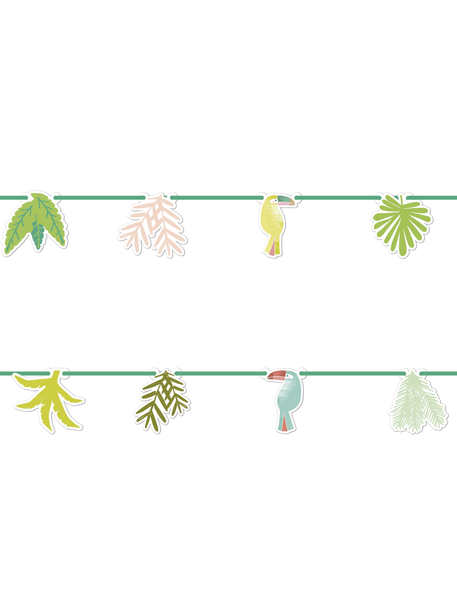 Kartónová girlanda s tropickým tukanom, 2 m džungľových listov