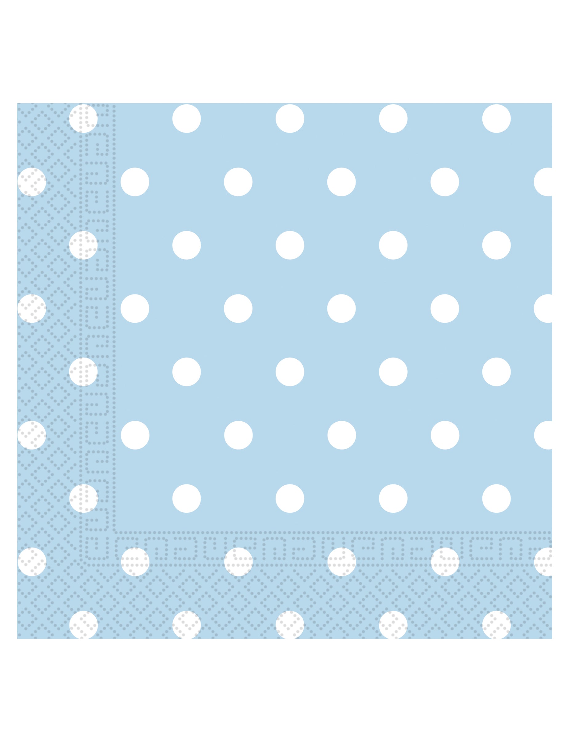 20 nebesky modrých papierových obrúskov s bielymi bodkami, 33 x 33 cm