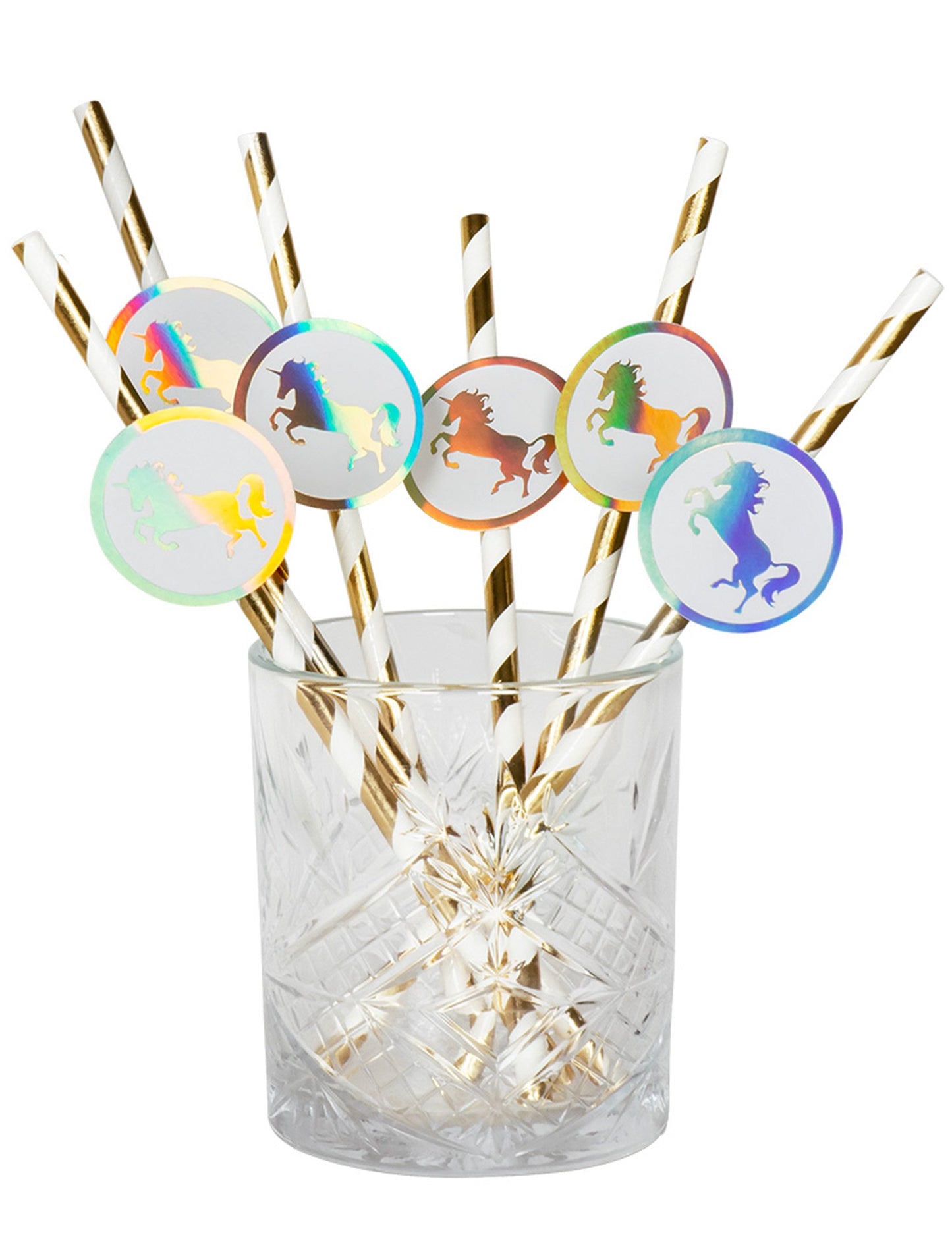 6 Holo Unicorn Cartboard Slaws 20 cm