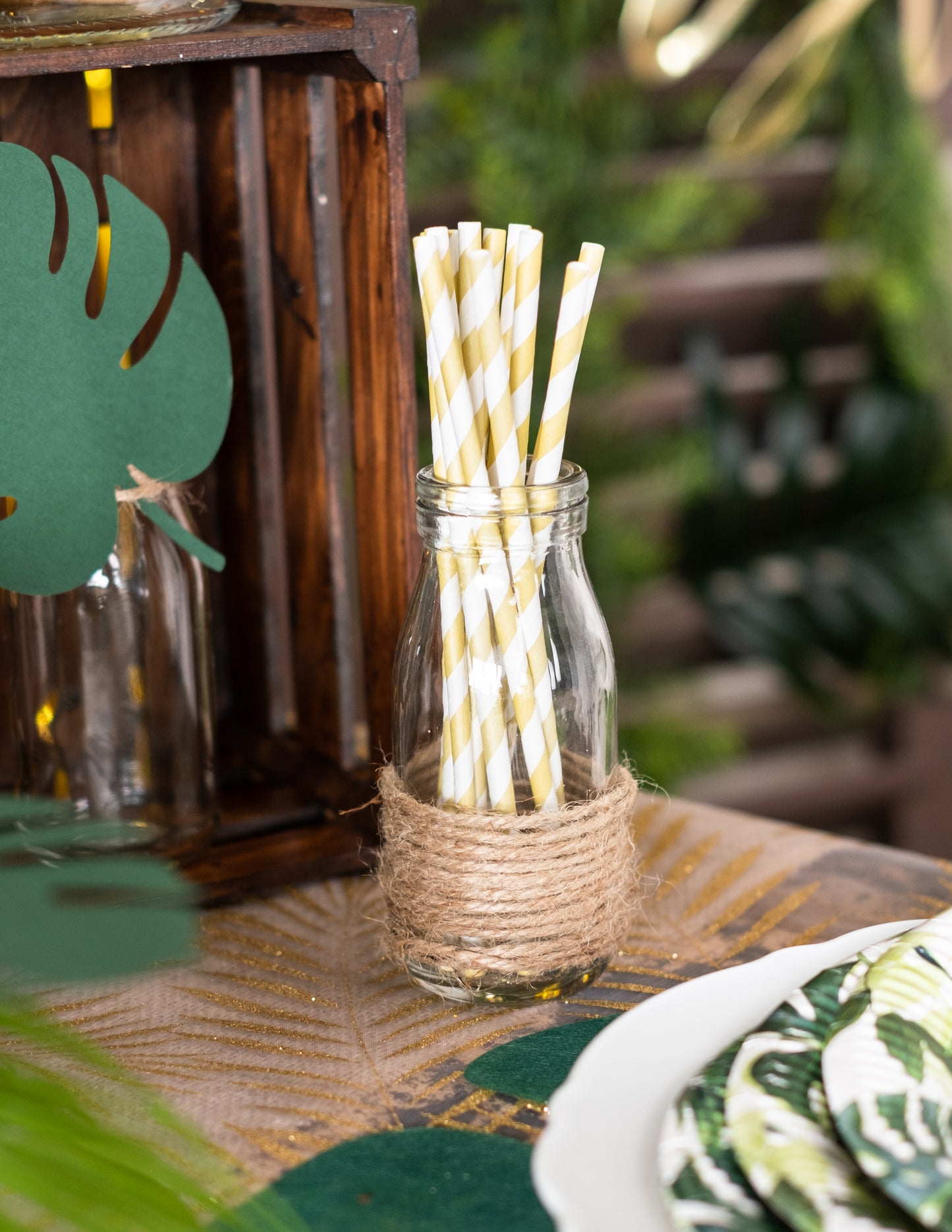 20 pozlátené pruhované kartónové slamky 20 cm