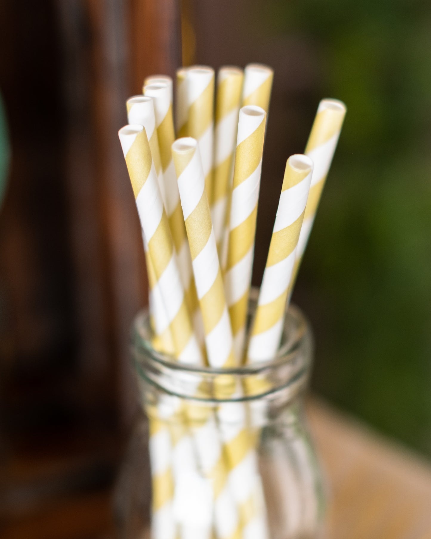 Tieto kartónové slamky sa predávajú v dávke 20. Majú dĺžku približne 20 cm. Sú zdobené bielymi a zlatými pruhmi. Tieto zlaté slamky sú ideálne na zdobenie okuliarov k narodeninám, svadbe a bábätko!
