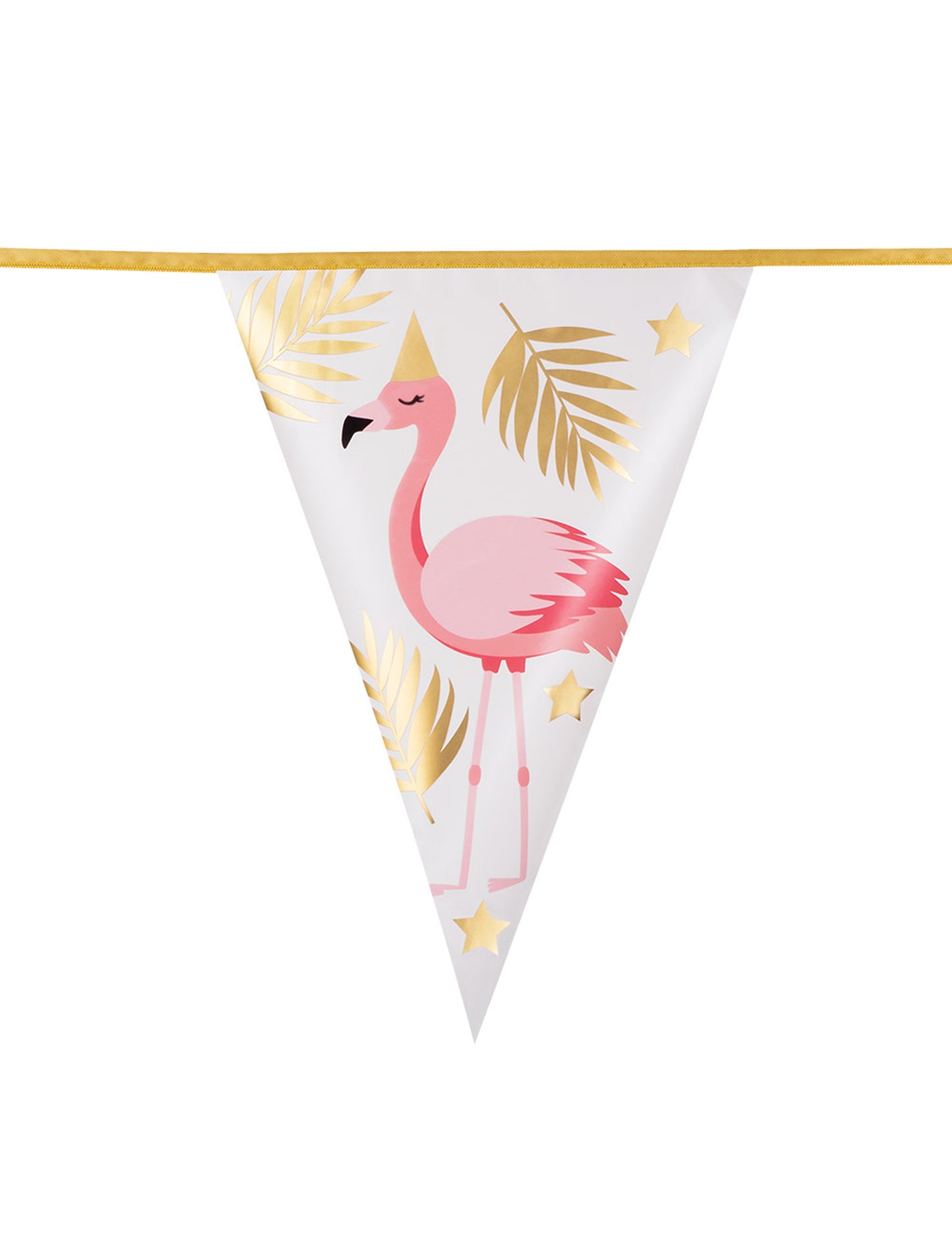 Tento girlanda je vyrobená z plastových palúbok. Má dĺžku asi 4 metre. Jeho biele pennanty s rozmermi 30 x 20 cm majú vzory plameniakov a tropických listov. Tento Tanions Garland bude perfektný ako dekor pre vašu večierok na téme Flamingo!