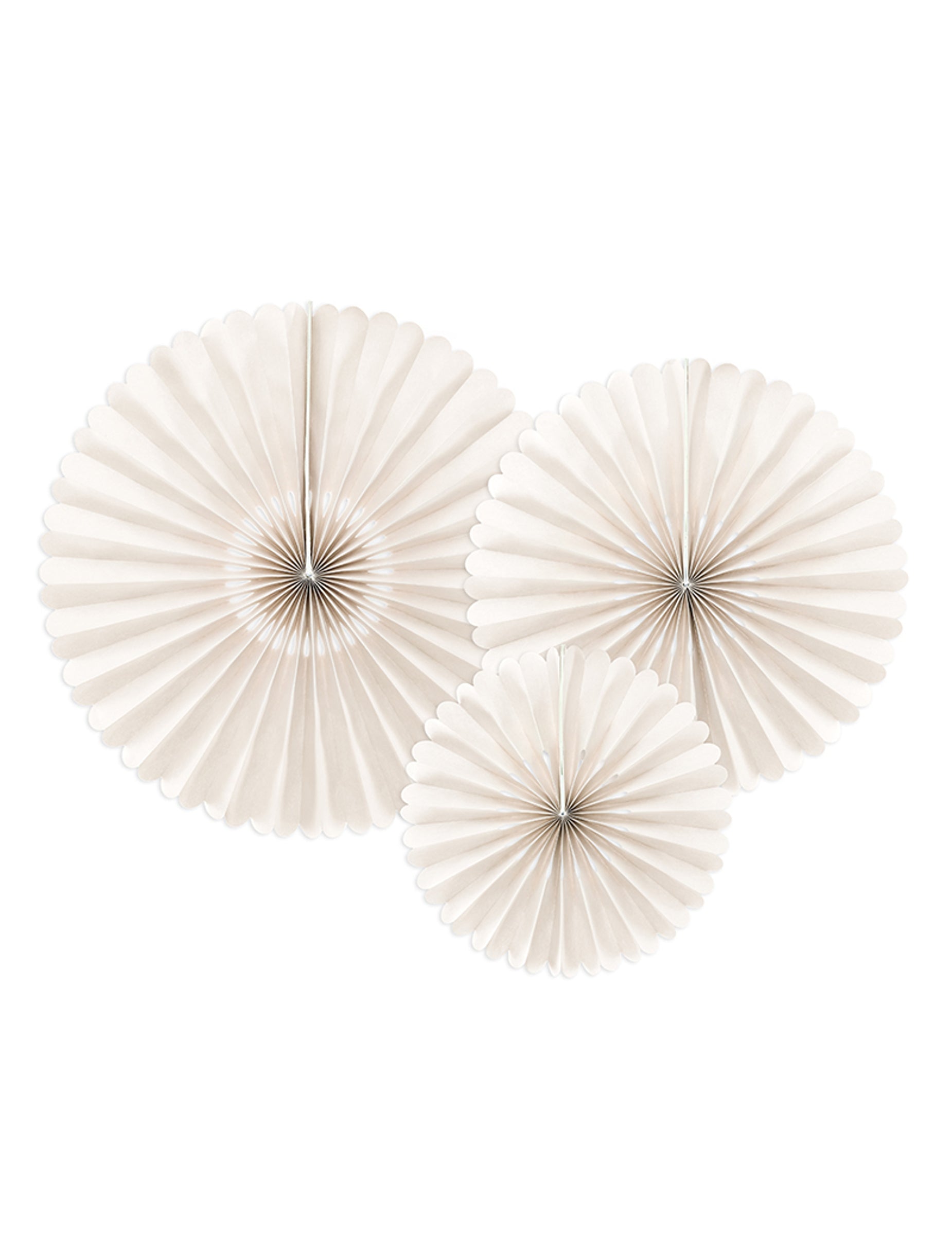 Dodajte nádych elegancie tejto sade 3 kusov rozety Béžové papierové fototapety. Dostupné v troch rôznych veľkostiach s priemerom 26, 34,5 a 43. cm, tieto rozety sú ideálne na vylepšenie vášho svadobná výzdoba alebo akúkoľvek inú slávnostnú udalosť.