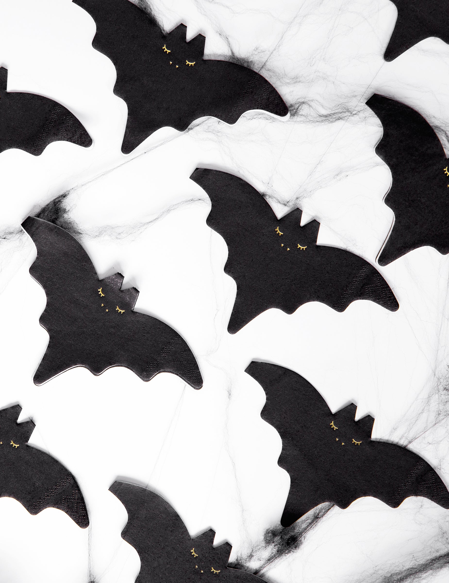 Vyberte si toto balenie po 20 kusoch uteráky tematický papier. V tvare netopier čierne so zlatými očami, merajú 16 x 9 cm. Ideálne na vylepšenie dekorácií vášho stolaHalloween, tieto uteráky spájajú originalitu a eleganciu.