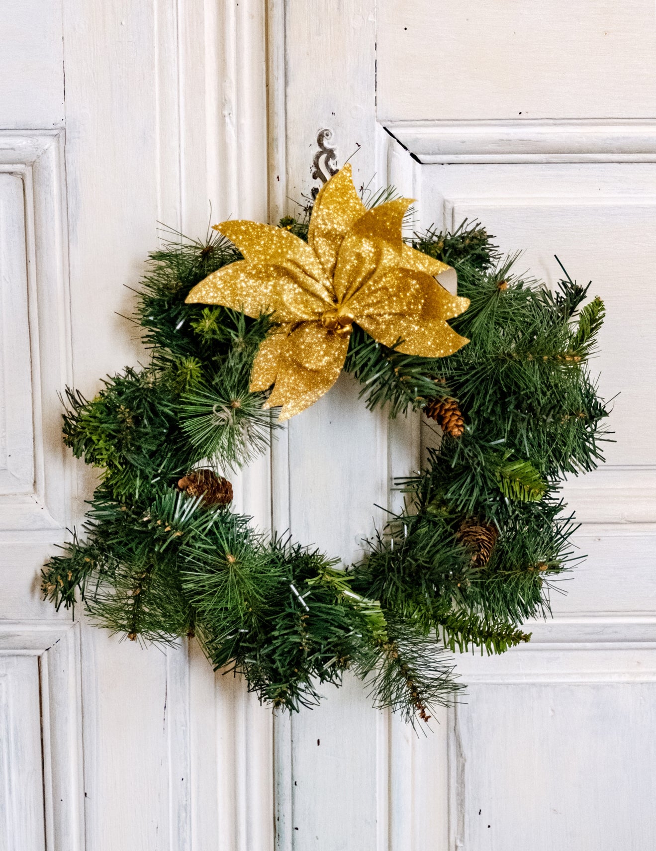 S rozmerom 20 cm, Tento dekoratívny doplnok dodá vášmu domovu slávnostný nádych. Tento vynikajúci uzol vianočnej hviezdy Je ozdobený malými stredovými zvončekmi a pokrytý trblietavými zlatými trblietkami. Dodajte svojej dekorácii trblietanie. kvet vianočnej hviezdy ideálne na vylepšenie vášho stola Vianoce.