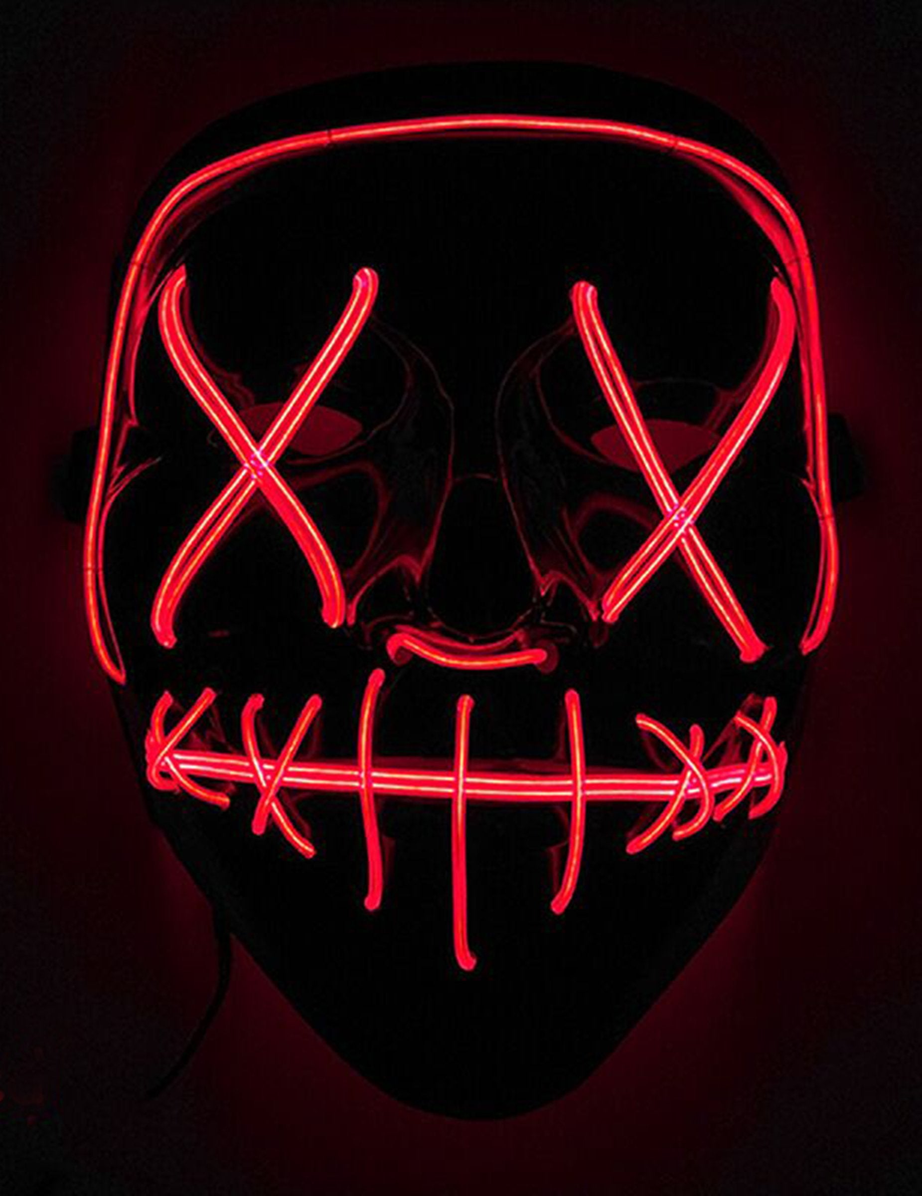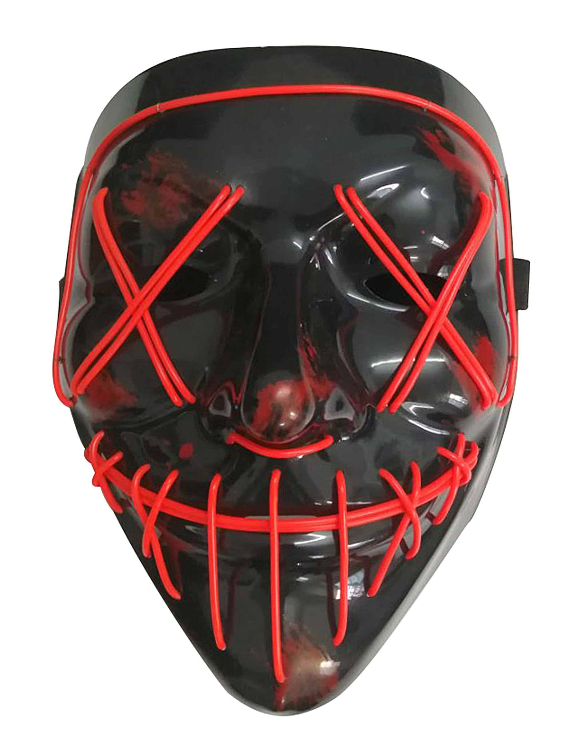 Táto červená maska LED LED je vyrobená z čierneho plastu. Meria 20x18 cm. Ak sa na to pozriete za denného svetla, je úplne čierna so stopami krvi trochu všade ... Táto maska má skutočne desivú históriu! Na druhej strane, keď ho zapálite uprostred noci, dva obrovské kríž a ústa zabalené v červených LED nite zmrazia okoloidúcich -s hrôzou. Máte 4 rôzne režimy zapaľovania pre masku: stabilné (pevné svetlo), Slow Flash, Fast and Off Flash. To vám umožní meniť potešenie! Na kŕmenie masky potrebujete 2 AA batérie (nie sú dodané) v puzdre a voila! Kábel jeden meter dlhý vám umožňuje uložiť kryt napríklad vo vrecku nohavíc! Vlákna LED emitujú studené svetlo, to znamená, že vodiče sa pri použití masky na pohybe nezahrievajú! Takže žiadne obavy o zdravie! Táto červená LED maska s kostýmom sériového zabijáka má napríklad niečo, čo dáva zimnicu na prelome uličky ... Halloweenský večer vyjde v skupine 3 alebo 4 s inou farebnou maskou, čo robí spravodlivo .. .