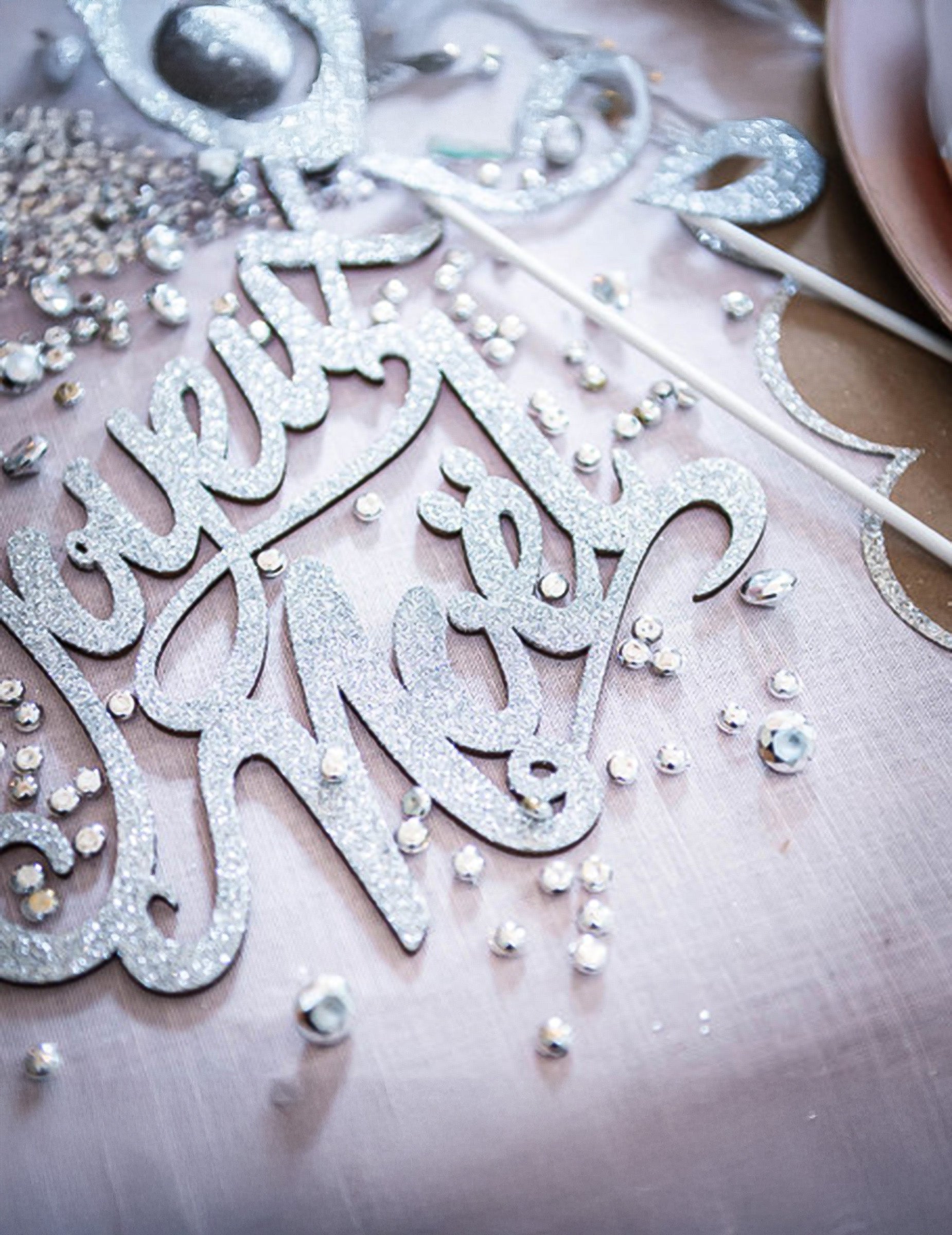 Drevená stolová dekorácia, Veselé Vianoce, strieborné trblietky, 19 x 20 cm slávnostný nápis