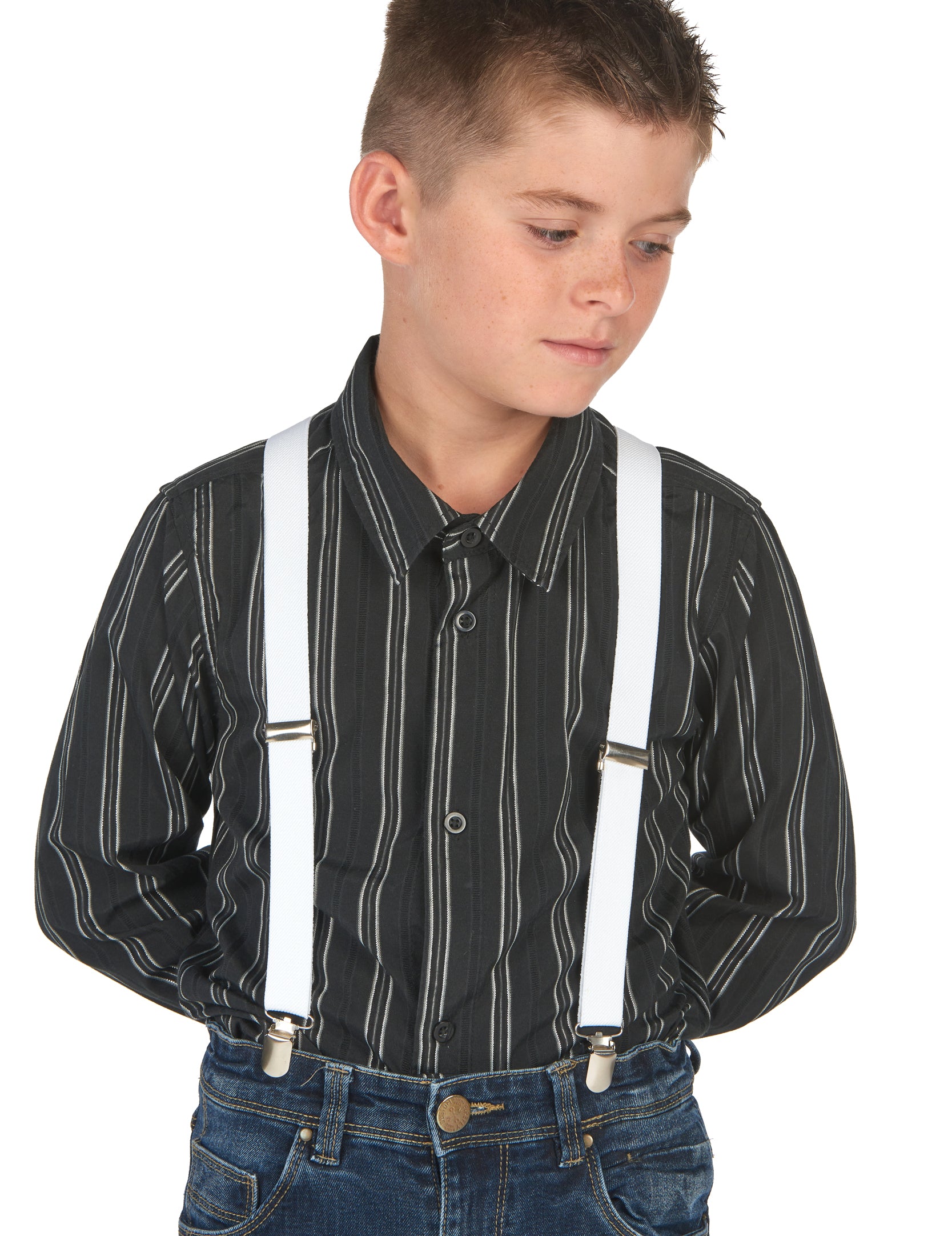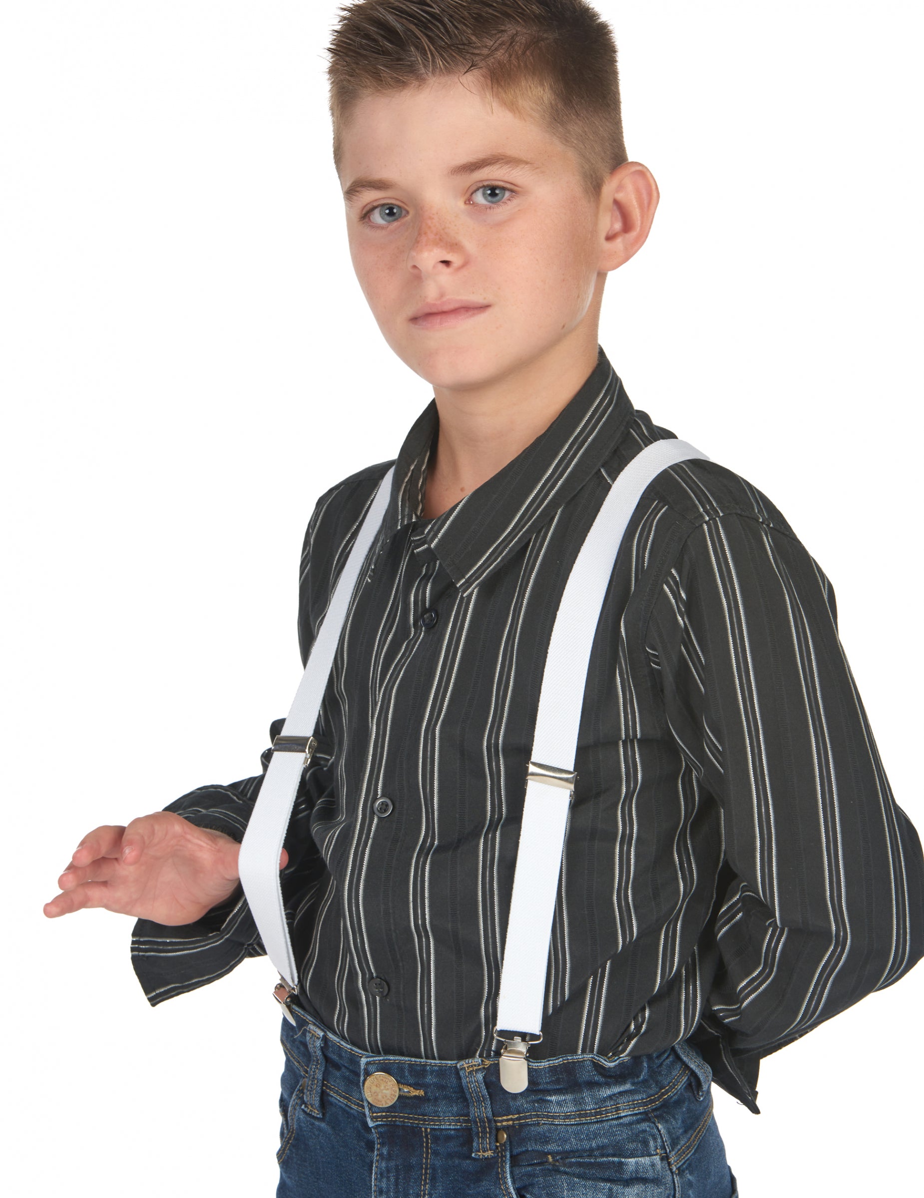 Táto dvojica podväzkov je určená pre deti. Sú biele a elastické, aby sa prispôsobili veľkosti všetkých detí. Držia sa na svojom mieste pomocou kovových klieští. Tieto podväzky budú ideálne na dokončenie kostýmu gangsterov vášho dieťaťa pre karneval.