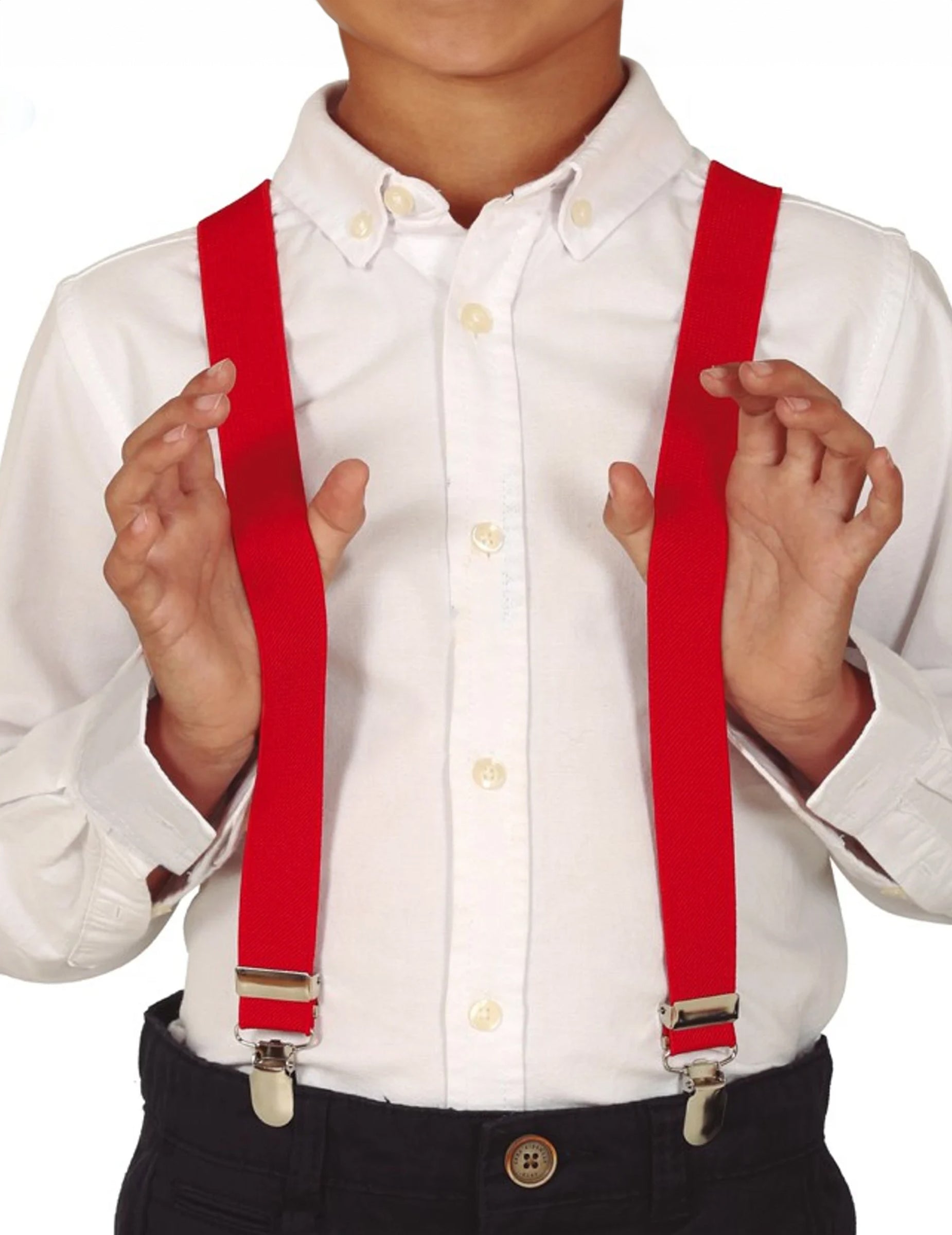 Tieto popruhy sú určené pre deti. Tieto nastaviteľné popruhy budú pripevnené pomocou kovových klieští umiestnených na prednej a zadnej strane. Budú ideálne na dokončenie kostýmu klauna, elegantného oblečenia pre všetky vaše slávnostné podujatia!