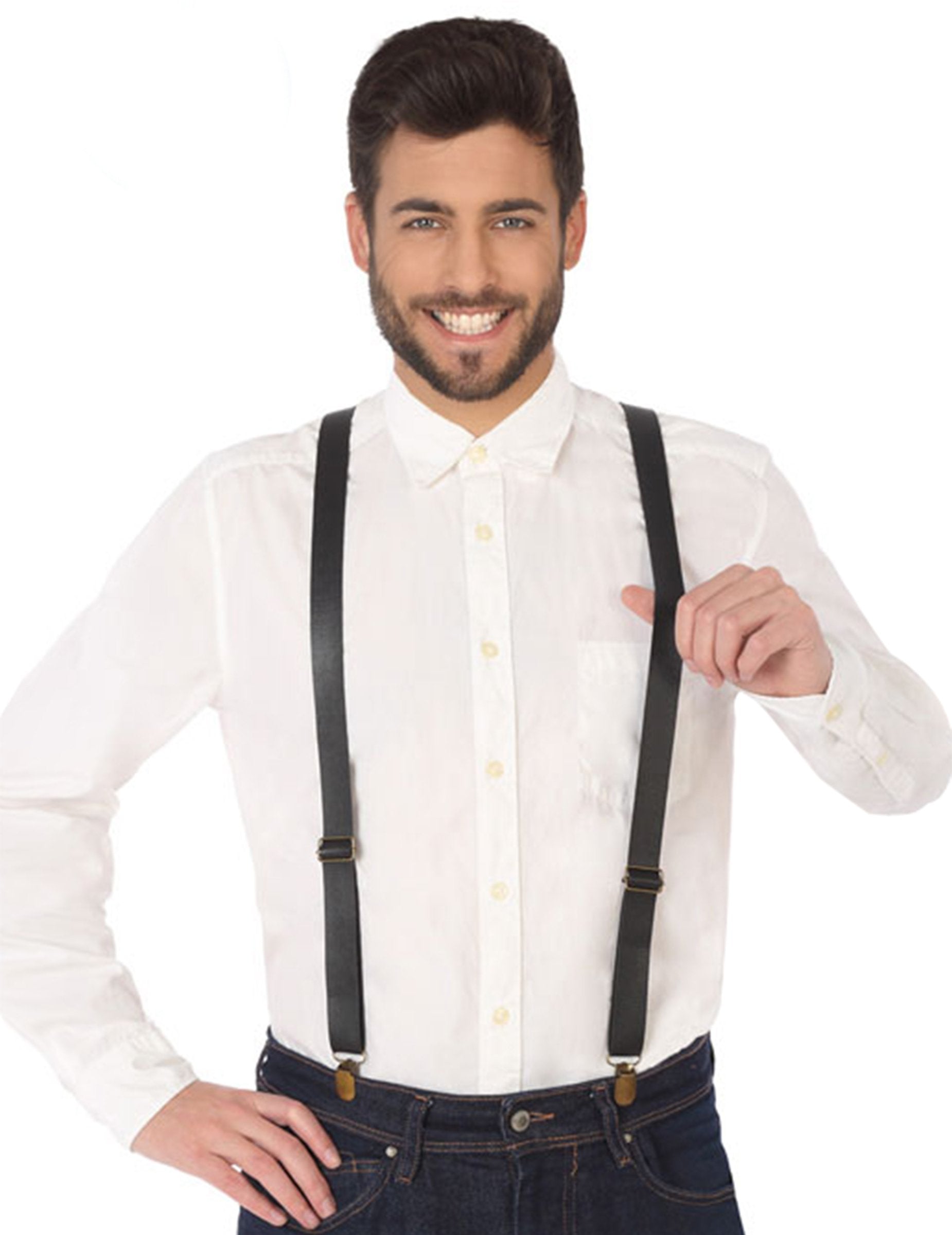 Tieto nastaviteľné popruhy sú čierne obrázky pre dospelých. Majú medené kliešte, ktoré majú byť pripevnené k nohavicami. Je to ideálny doplnok na večer na tému revúcich dvadsiatych rokov!
