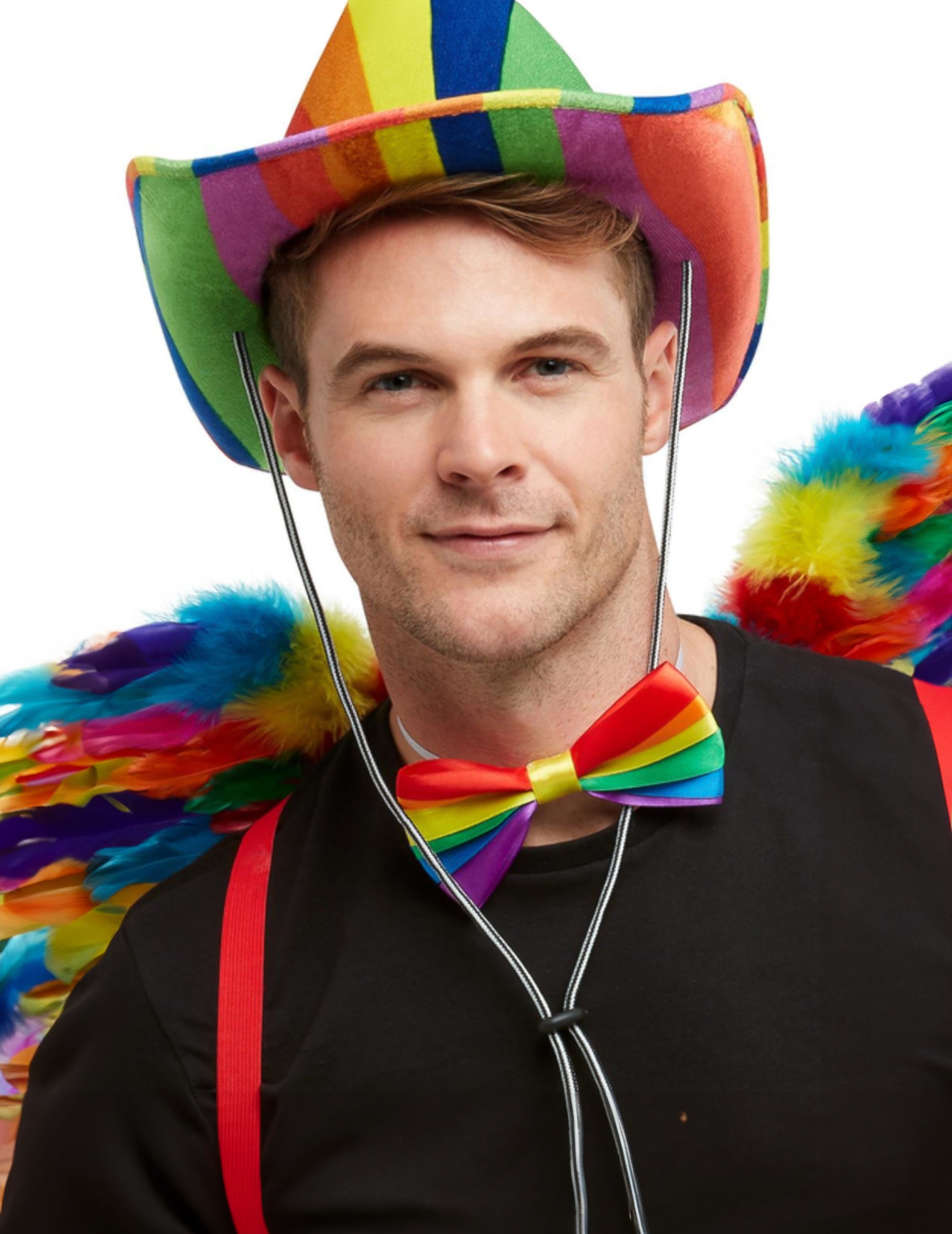 Tento dospelý motýľový uzol je vyrobený z látky. Je pruhovaný vo farbách dúhy a nosí sa pomocou elastického. Tento uzol bude ideálny na to, aby ste pri príležitosti karnevalu priniesli farbu.