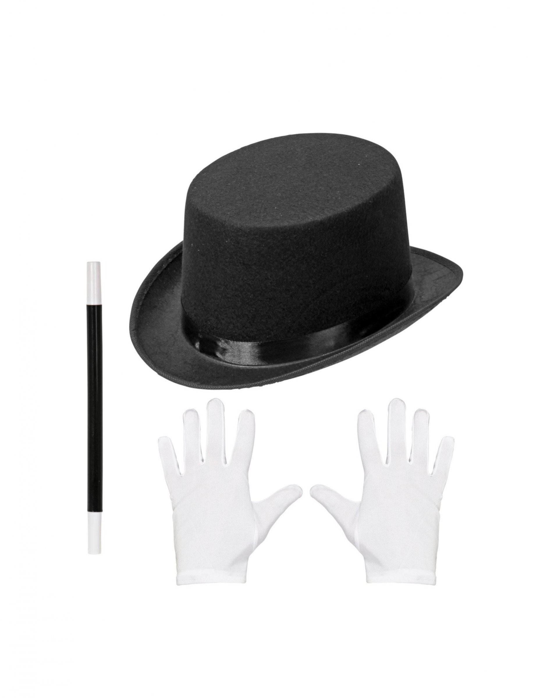 Táto súprava kúzelníkov pre deti pozostáva z páru rukavíc, klobúku a čarovného prútika. Klobúk je čierny klobúk čiernej farby. Baguta je na konci čiernobiela, je verná bagetom veľkých kúzelníkov. Biele rukavice dokončujú panoply. Tieto doplnky budú ideálne na transformáciu na dokonalého kúzelníka počas karnevalu alebo na prestrojené narodeniny!