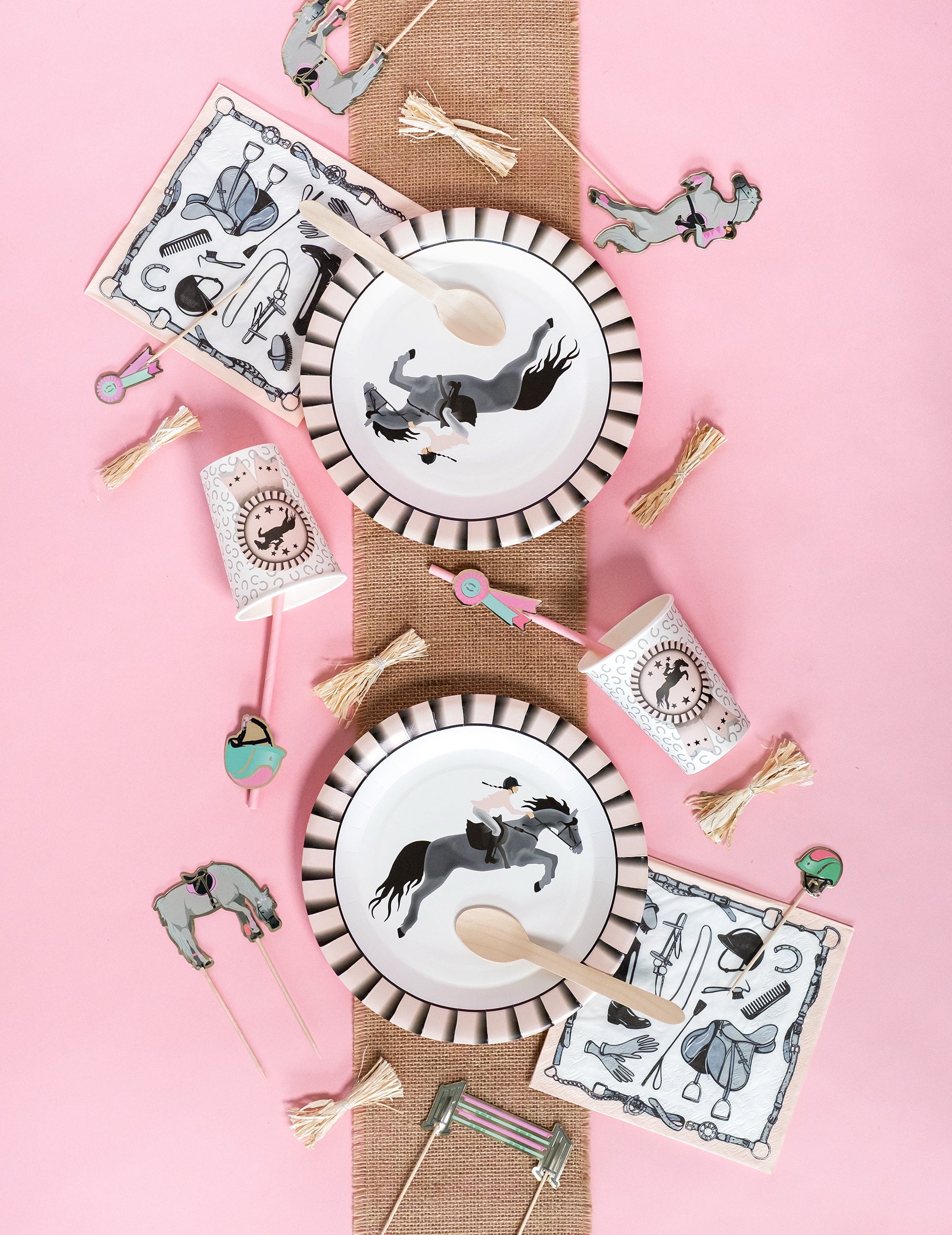 10 kartónových tanierov s jazdeckou tematikou 22,5 cm ružový kôň