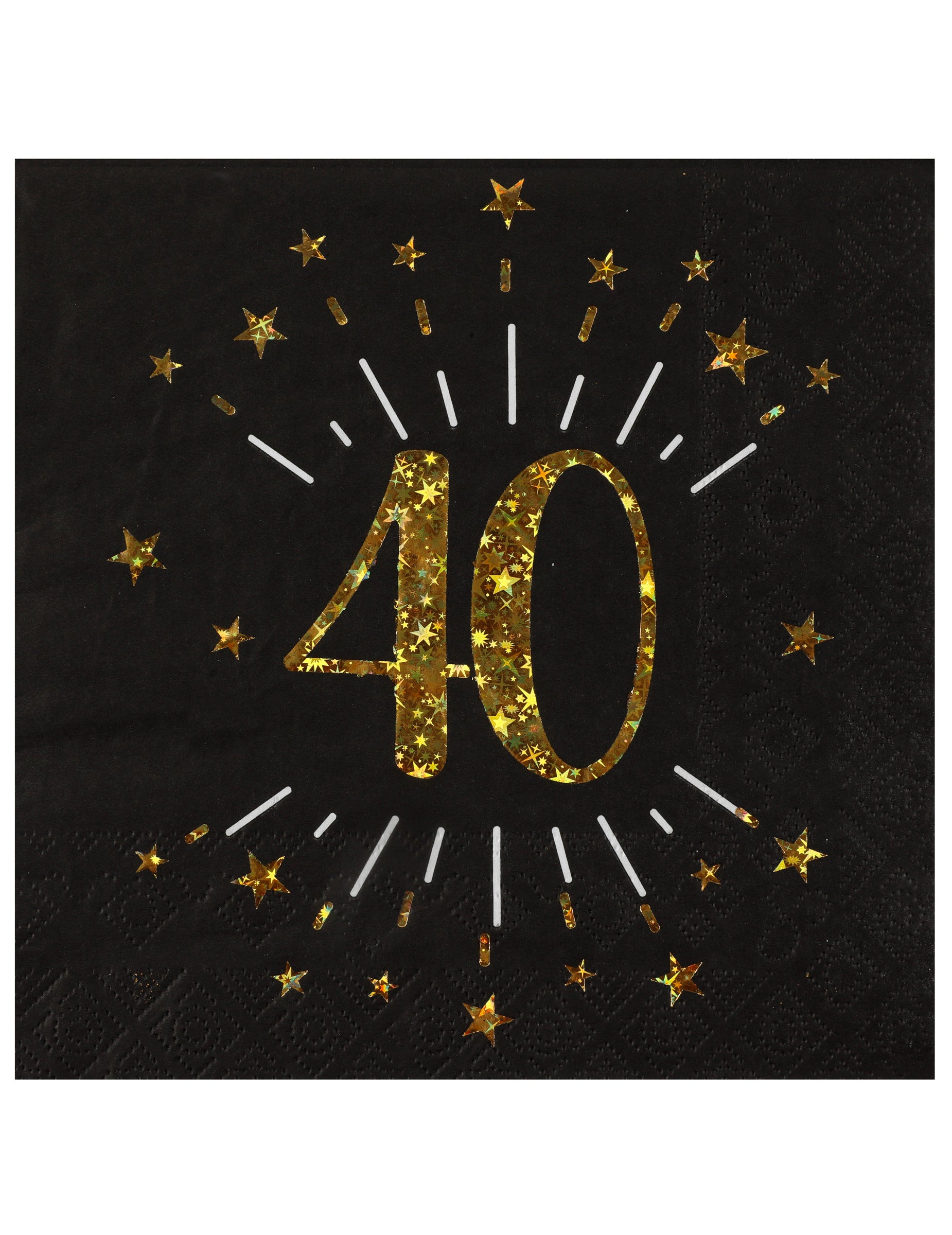 10 čierno-zlatých papierových obrúskov „Happy Birthday 40“ so zlatými hviezdičkami