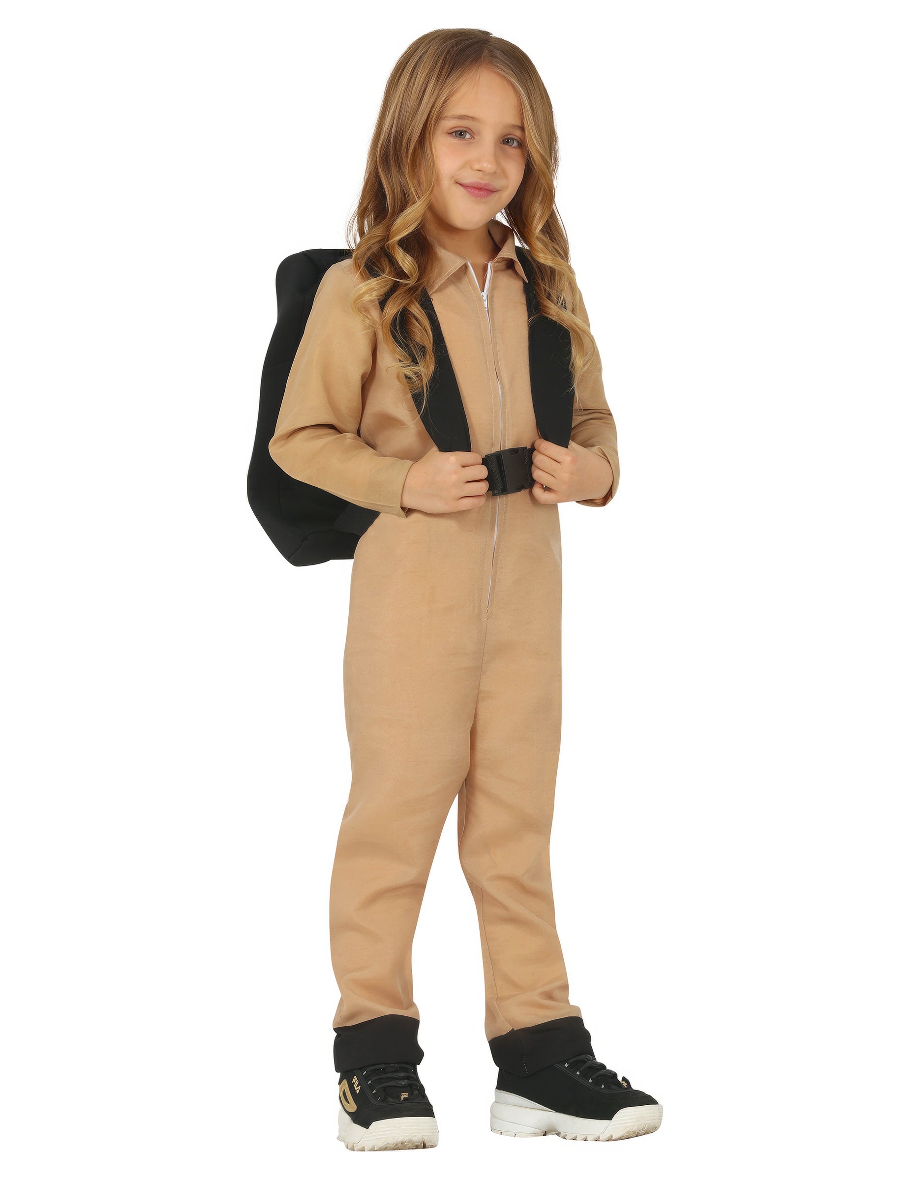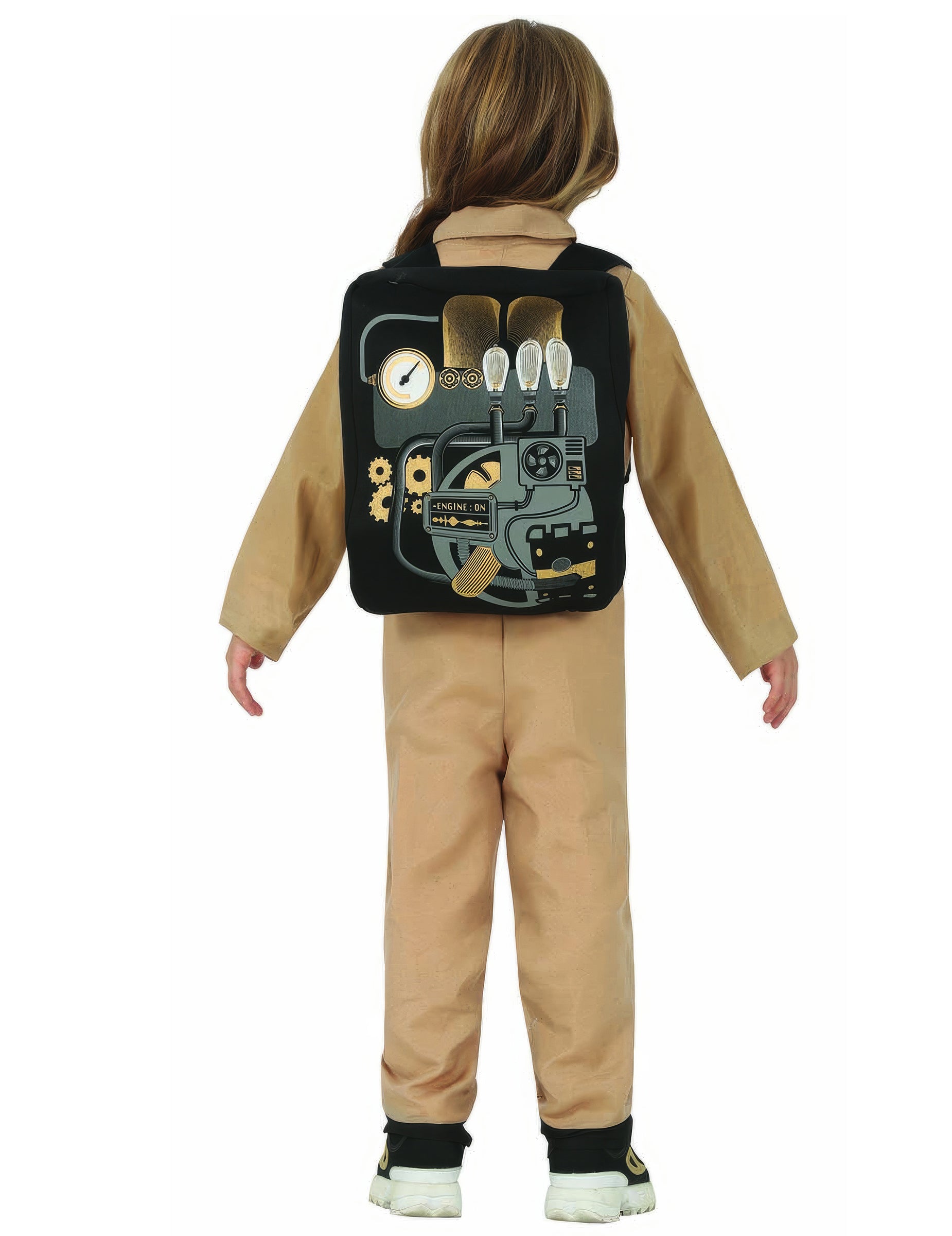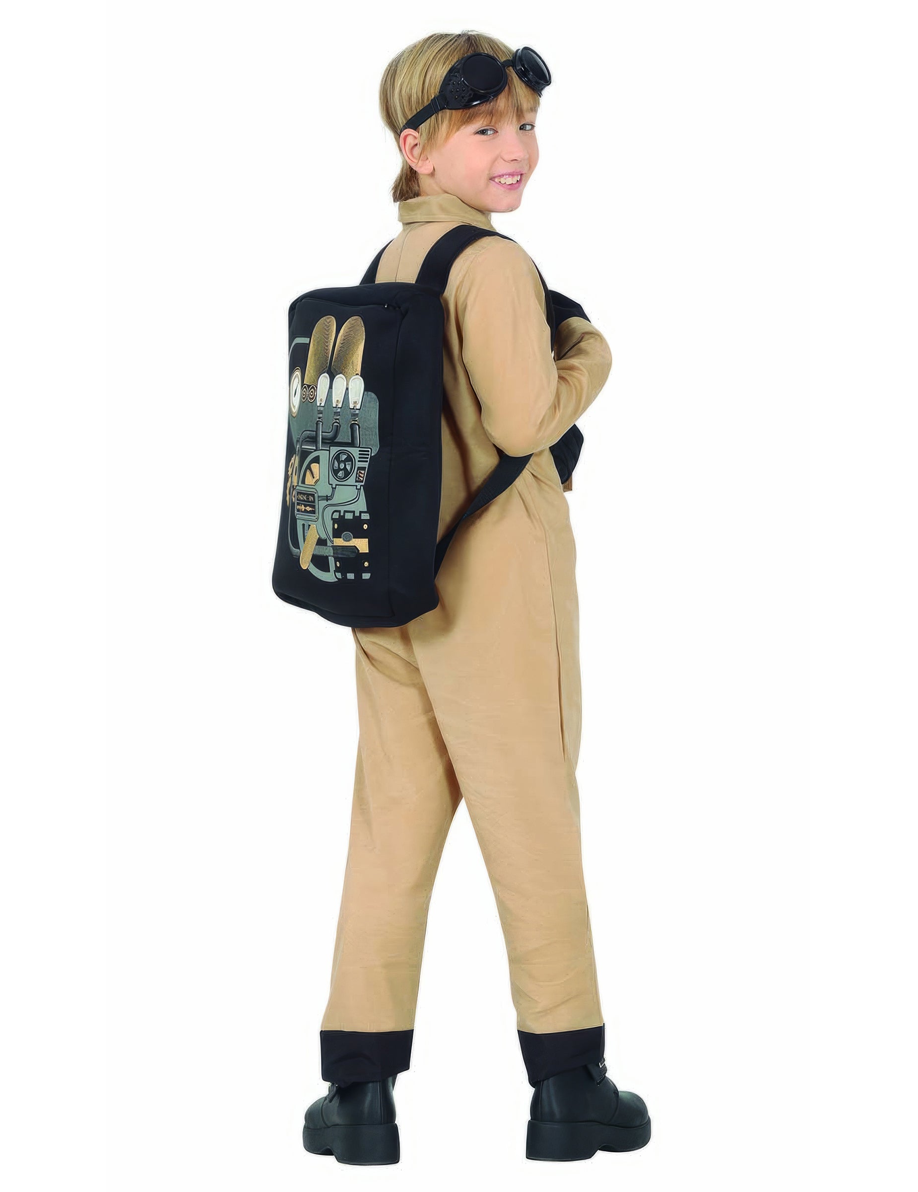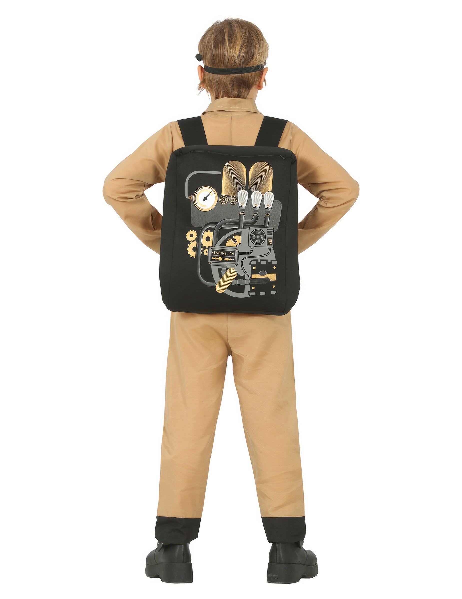 Tento kostým s duchovným kostom je určený pre deti a pozostáva z kombinácie a tašky (okuliare, pištoľ, rukavice a topánky, ktoré nie sú zahrnuté). Kombinácia je béžová vo farbe s falošným návratom s čiernymi nohavicami. V strede má dlhé zatvorenie svetla, ktoré umožňuje jeho ľahko navlečenie. Taška je čierna a prilepuje sa k zadnej časti pomocou širokej rampy a je držaná systémom ventrálneho uzatvárania. Vytlačí sa v kresbe loveckého stroja duchov. S týmto duchom -atraktívne maskovanie s taškou bude ideálne na prenasledovanie duchov a cukroviniek na Halloween večer!