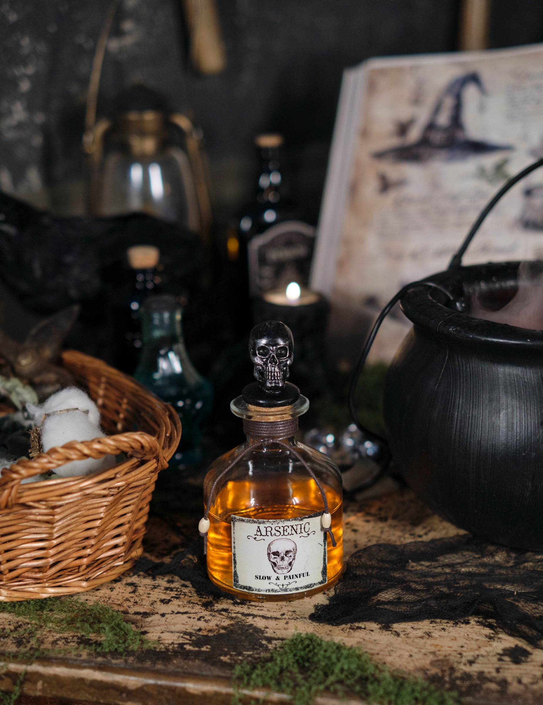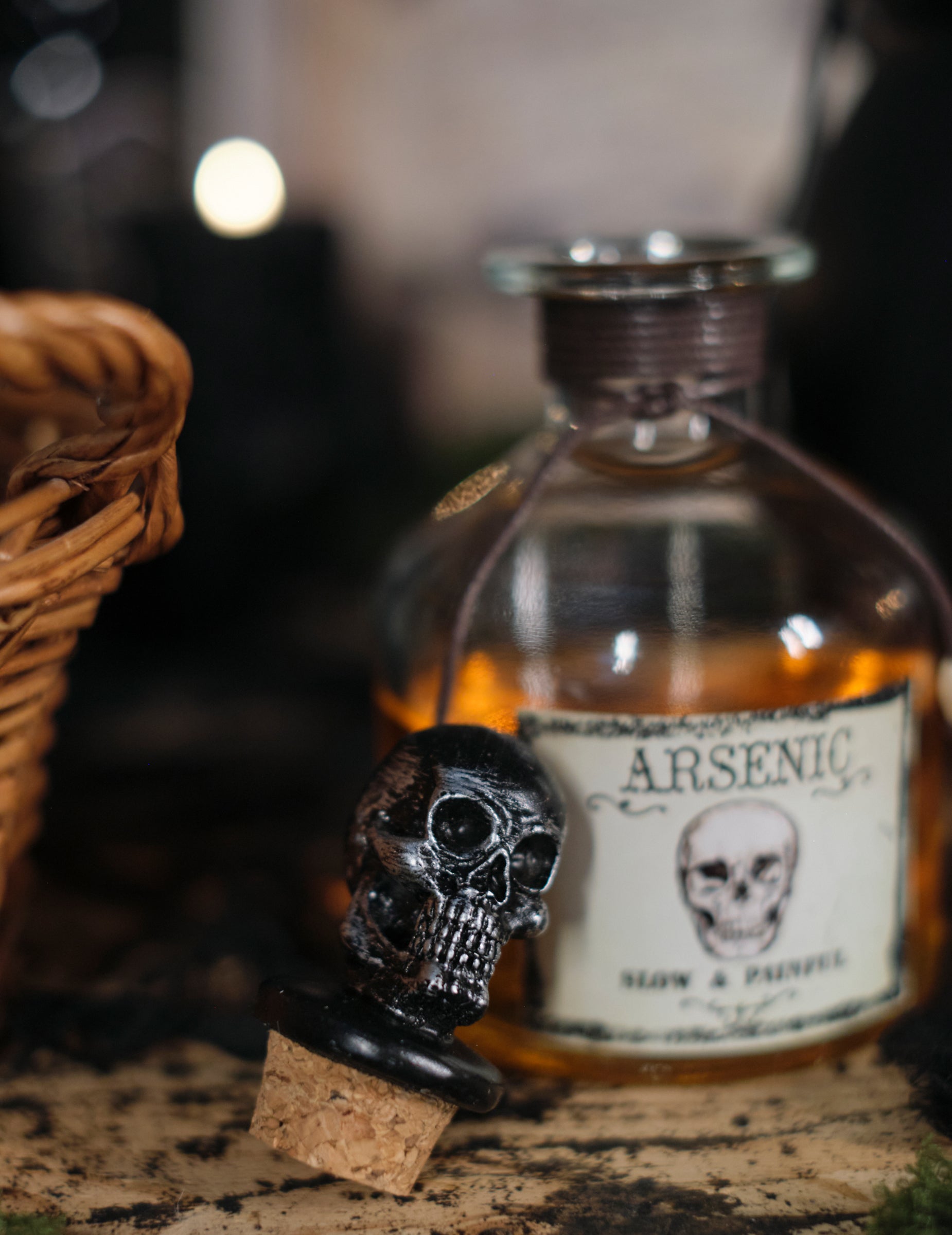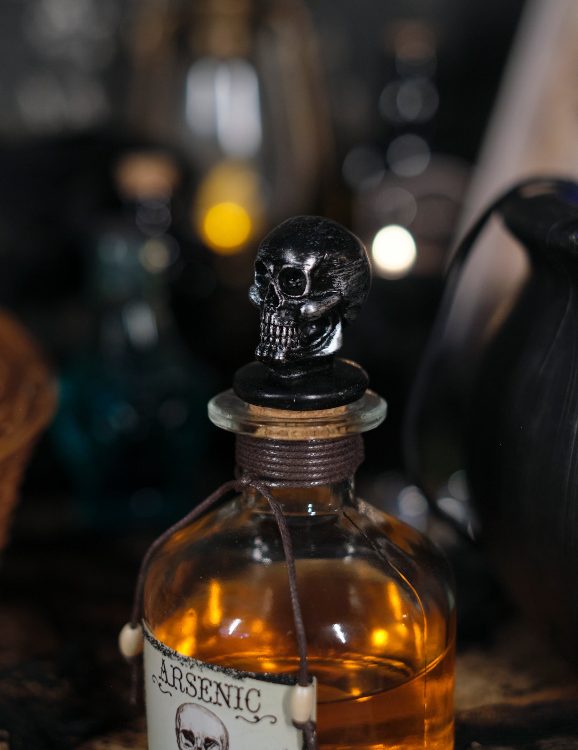 S jeho 16 cm Táto injekčná liekovka má strašidelnú retro štítok a vyrezávanú čiapku v tvare lebky, ktorá zdôrazňuje jej znepokojujúci vzhľad. Zabalený do lana a vybavený malými, premyslenými detailmi, dokonale dopĺňa dekoráciu inšpirovanú starými otrávenými skrinkami. Ideálne na obohatenie tmavého a podmanivého prostredia.