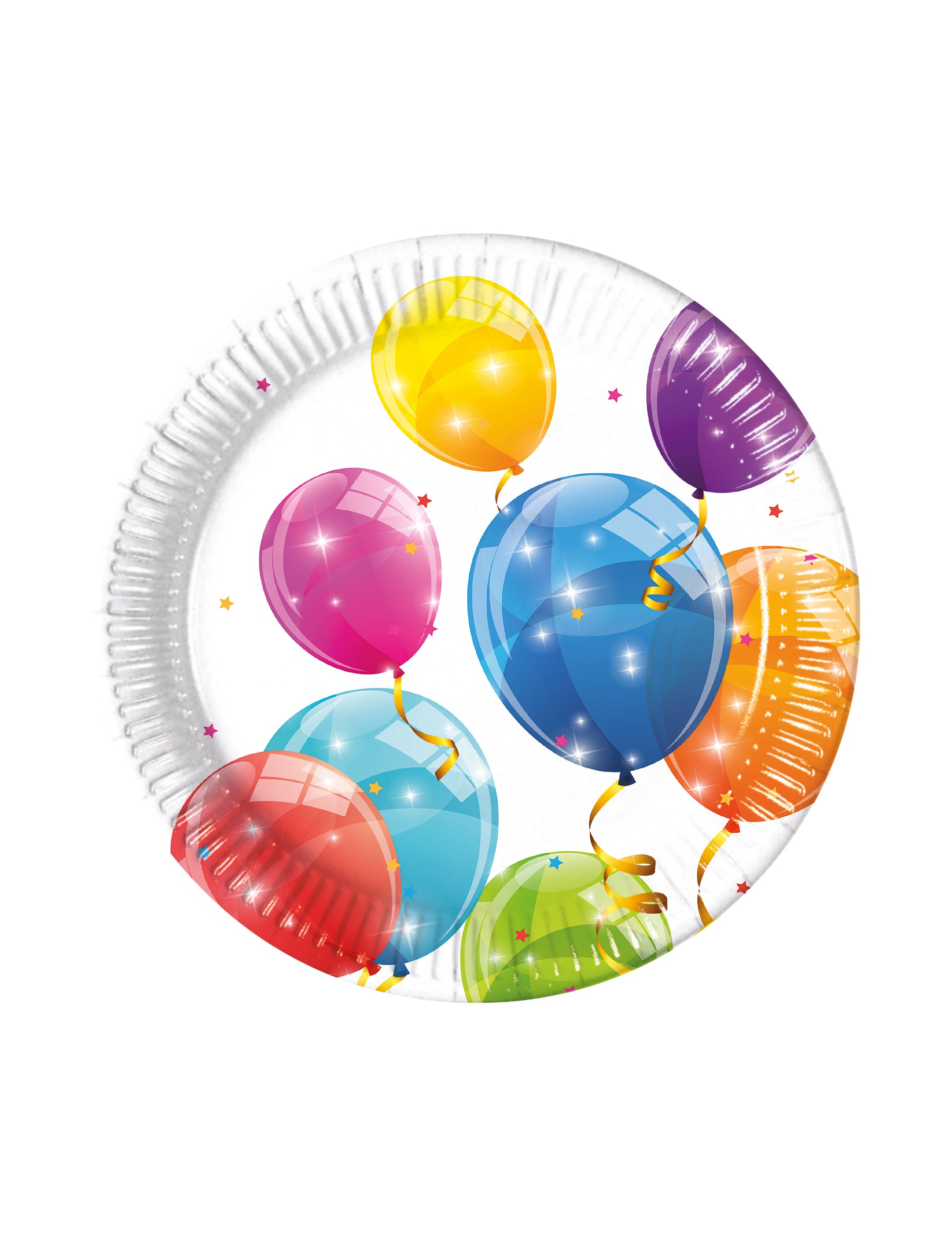 Toto balenie obsahuje 8 taniere jednorazové s rozmermi približne 23 cm v priemere. Vyrobené z kartónu s prírodným lakom, majú pekné viacfarebné balónikové vzory. Tieto taniere Slávnostné sú ideálne na oživenie výzdoby stola počas narodeniny farebné.