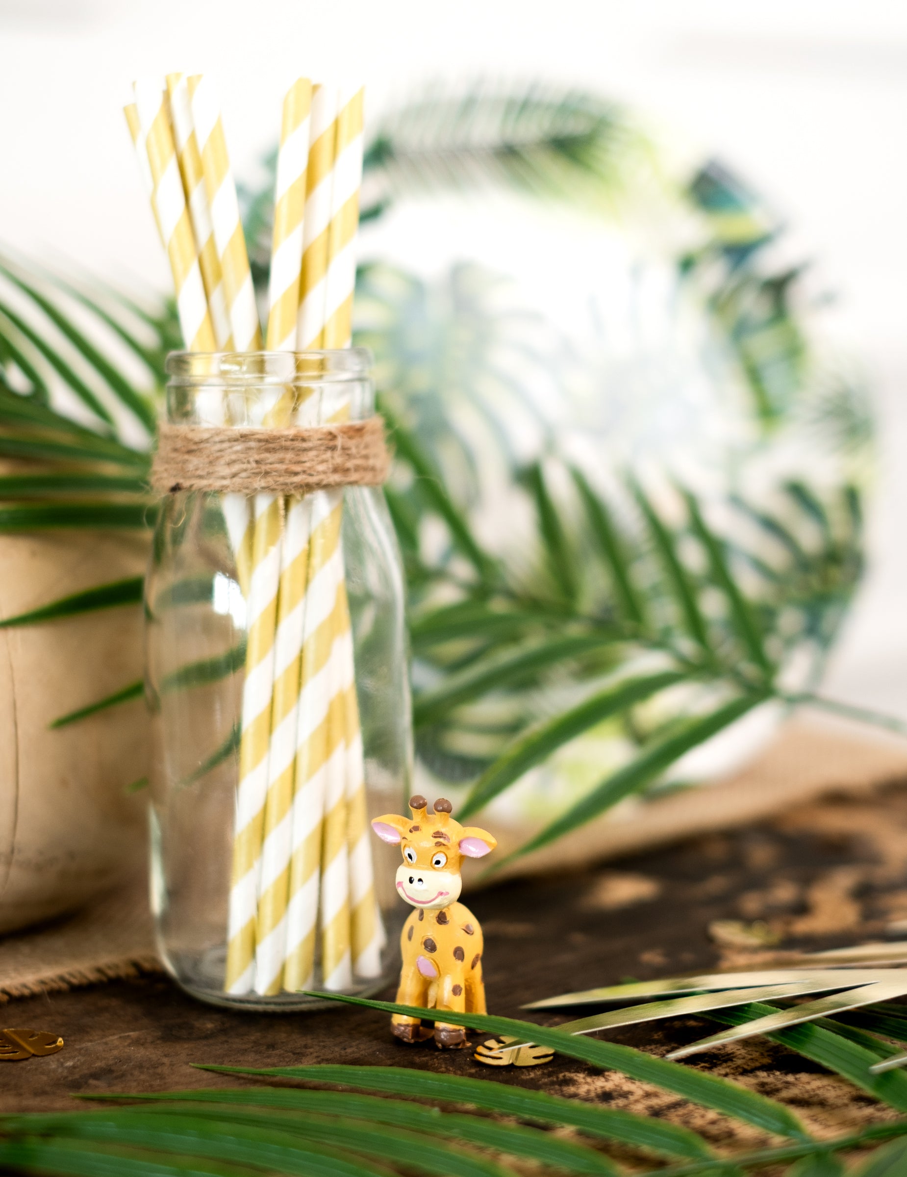 Tento malý figúrka Vyrobené zo živice, rozmery približne 3 x 3 cm. Je vybavený žirafa s usmievavou tvárou. Ideálne na vylepšenie vašich dekorácií na podujatí safari téma, toto figúrka žirafy nájde svoje ideálne miesto na slávnostnom stole.