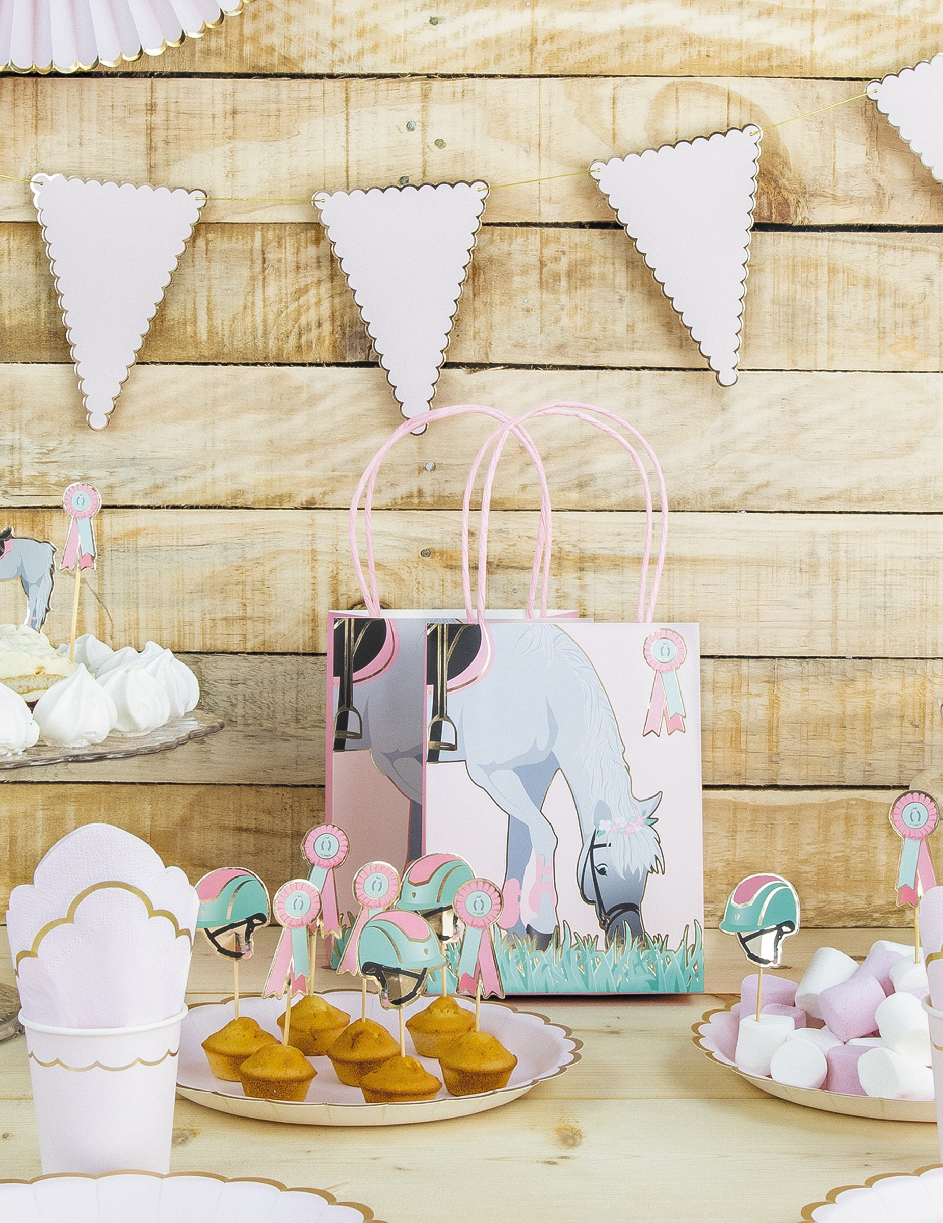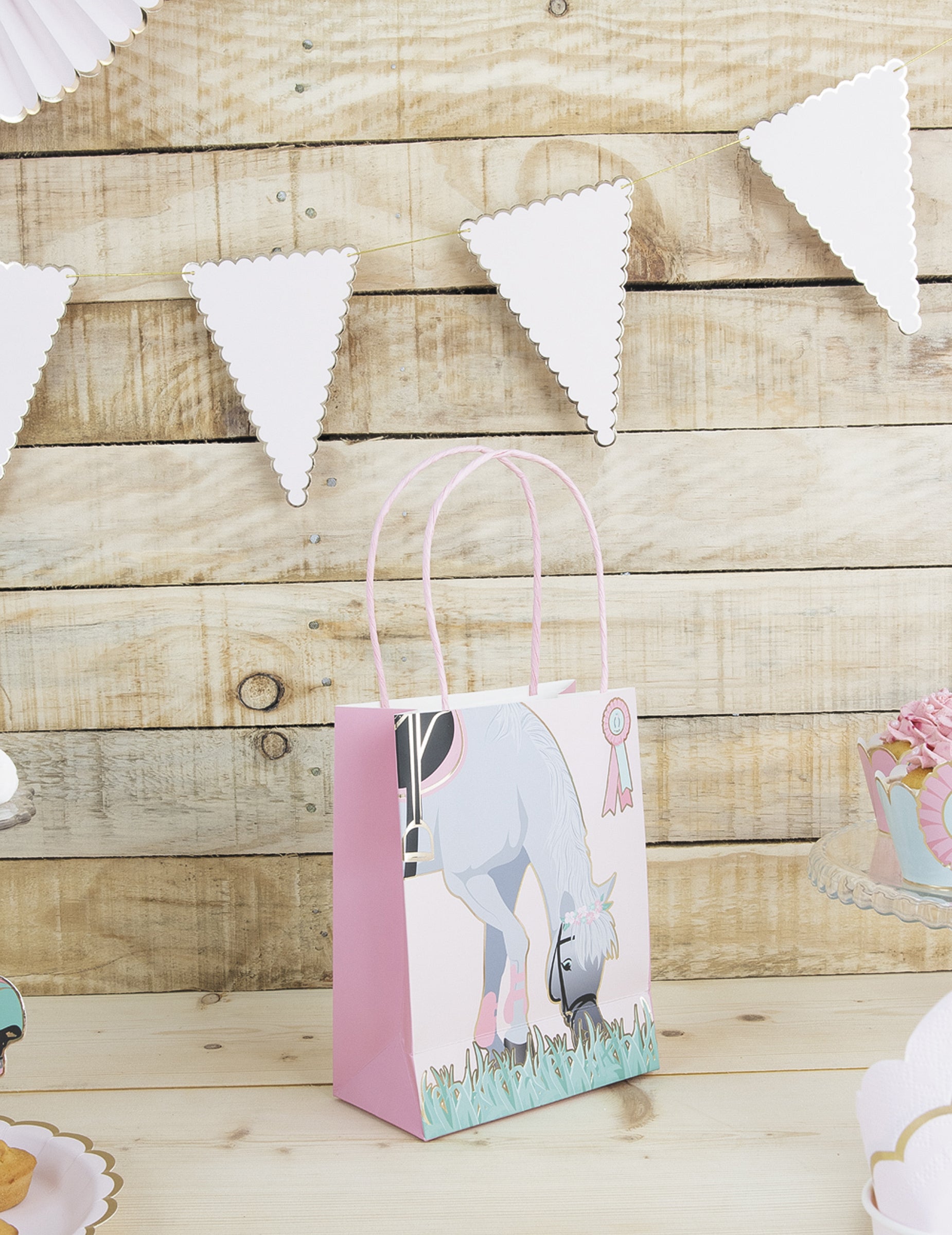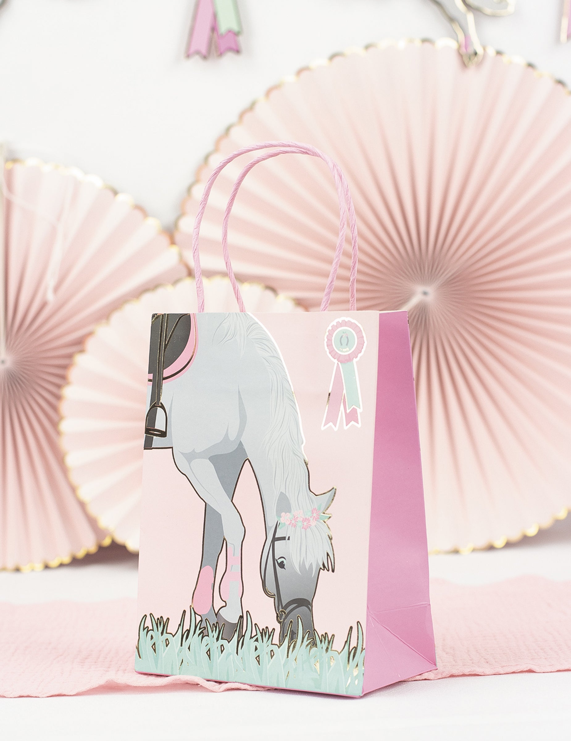 Táto sada pozostáva zo 4 párty tašky v papieri s rozmermi 20 cm výška. Každá kópia má kôň Sivý materiál. Sú vybavené rúčkami a malou stuhou, čo umožňuje jednoduchú prepravu maškŕt. Darujte im... darčekové tašky originálne nápady pre mladých hostí počas narodeniny s konskou tematikou.