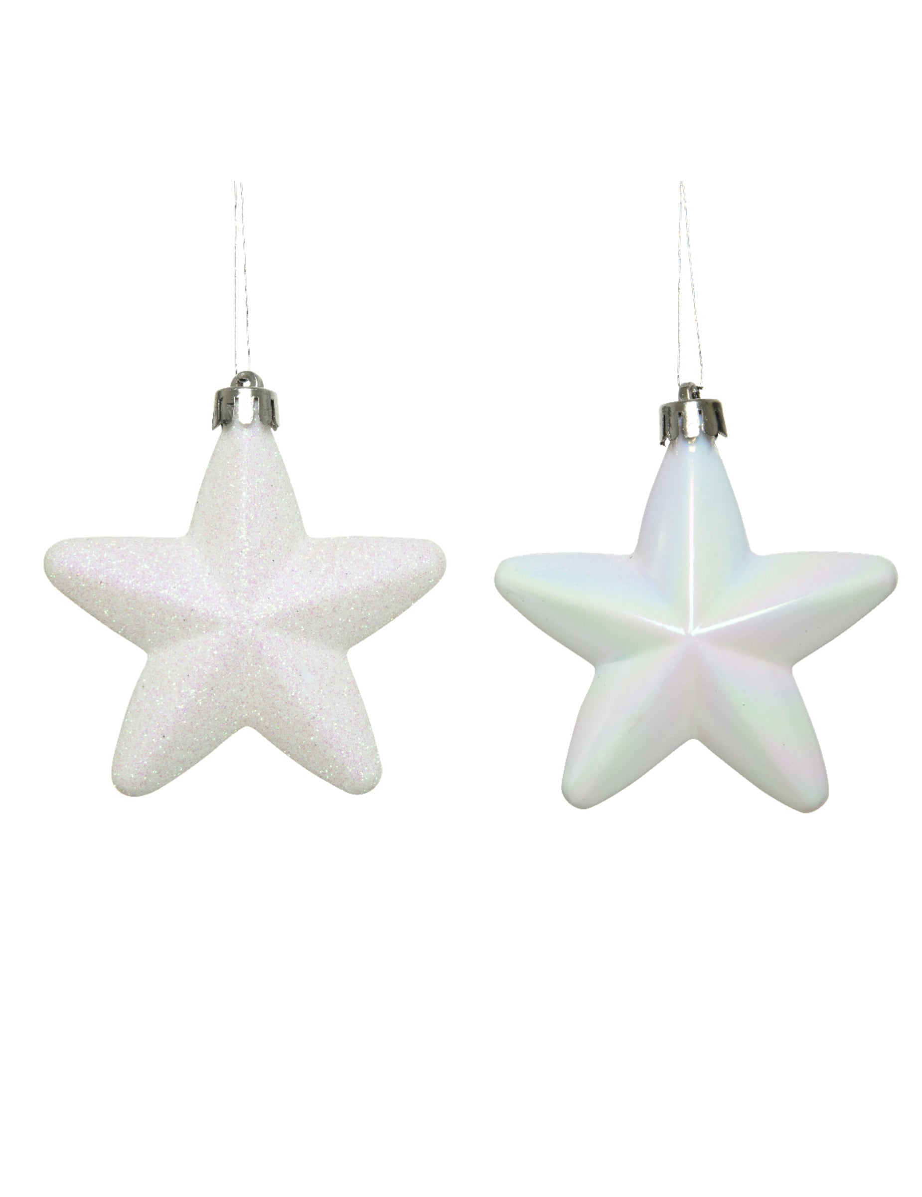 Ce lot de 6 suspensions pour sapin d'environ 7,5 cm apportera de l'éclat à votre intérieur. Ces étoiles blanches au fini pailleté et iridescent sont parfaites pour instaurer une ambiance polaire durant vos fêtes de Noël.