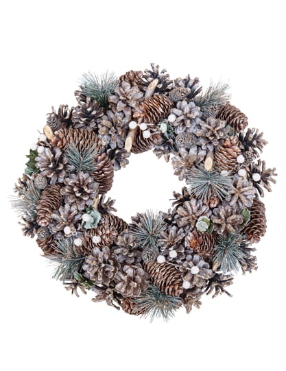 S priemerom približne 35 cm, toto Vianočný veniec dodá vášmu interiéru nádych autenticity. Skladá sa zo zostavy prírodné dekorácie vrátane šišiek rôznych tvarov, jedľových konárov, dreva a malých bielych korálok. Je to perfektný doplnok na vytvorenie magickej, prirodzenej atmosféry počas vášho oslavy konca roka.