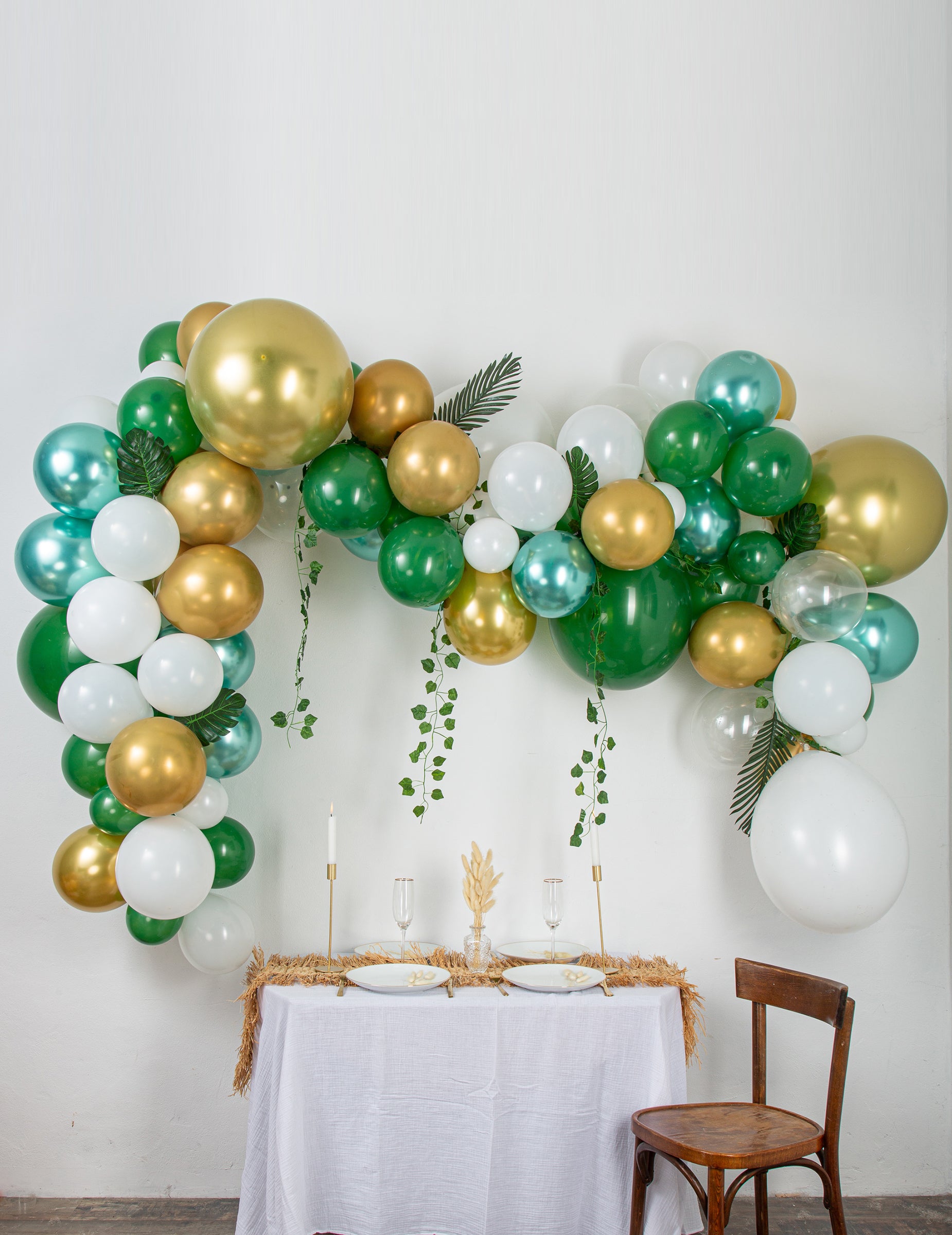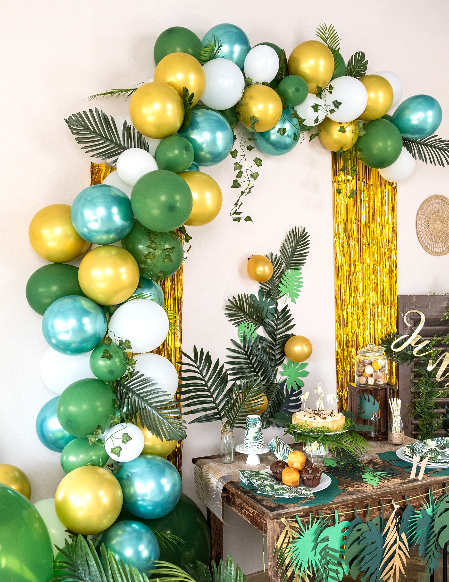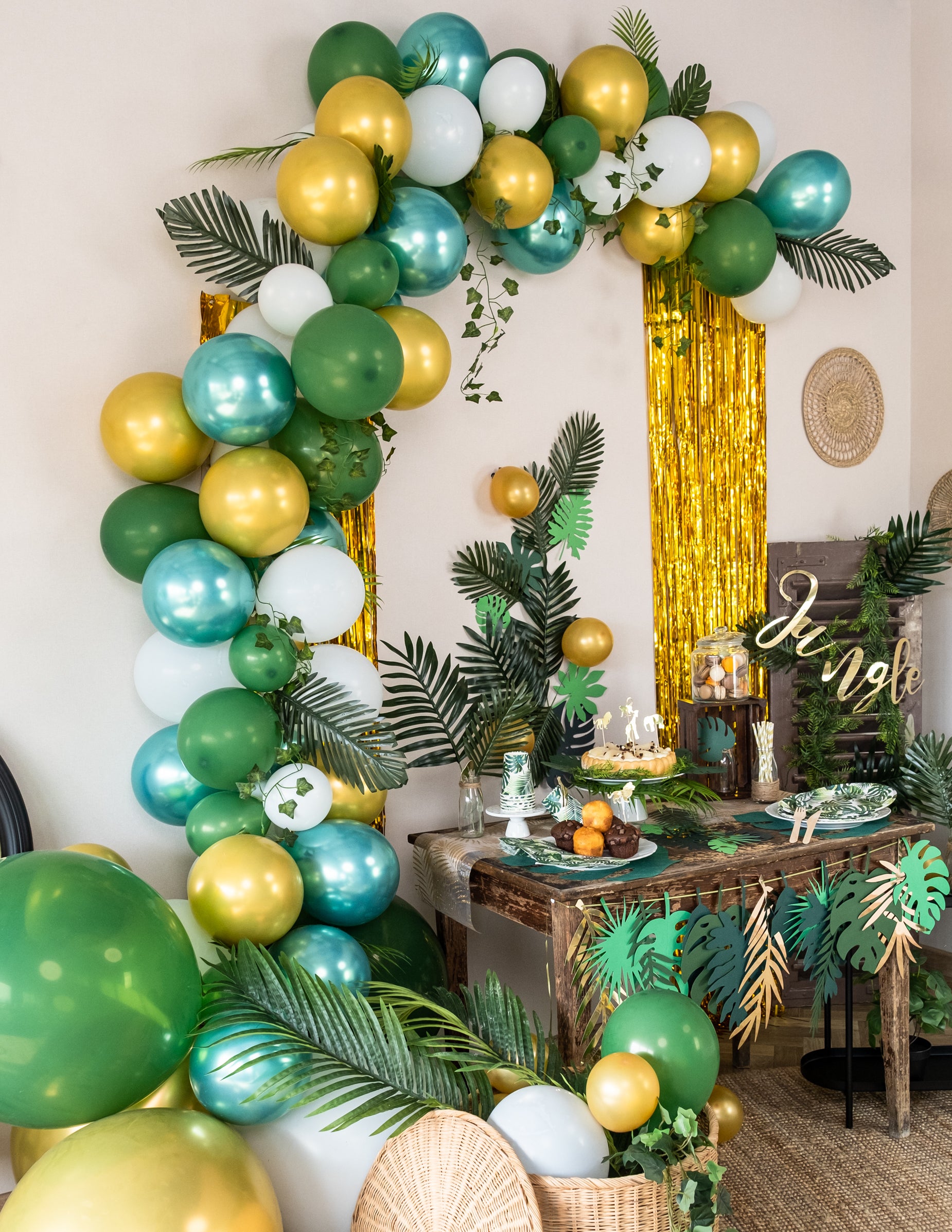 Pozdvihnite svoju udalosť s týmto súprava na oblúk z tropických balónov pre elegantný a exotický dekor úspešný. Či už ide o oslavu manželstvo, A narodeniny Či už ide o oslavu narodenia dieťaťa alebo inú udalosť, táto sada prináša do vášho priestoru jedinečnú botanickú atmosféru. Toto kompletné balenie vám umožní navrhnúť... tropický balónový oblúk 86 dielikov vrátane: 6 veľkých 45 cm balónov cm, 60 balónov štandardnej veľkosti (25 cm) a 20 malých 12 cm balónov cm v odtieňoch zelenej, bielej a zlatej. Na dotvorenie vášho tropická témaSada obsahuje aj dve girlandy z brečtanu s dĺžkou 2,10 m, štyri listy monstery, tri palmové listy, 5 m upevňovaciu stuhu a lepiace bodky. Zostavenie tejto balónový oblúk Je to jednoduché: nafúknite prvky vzduchom (bez hélia), pripevnite ich k základni a pridajte rastliny, aby ste dokončili svoju dekoráciu. elegantný tropický motívJe to ideálny doplnok pre tropická tematická párty nezabudnuteľné.