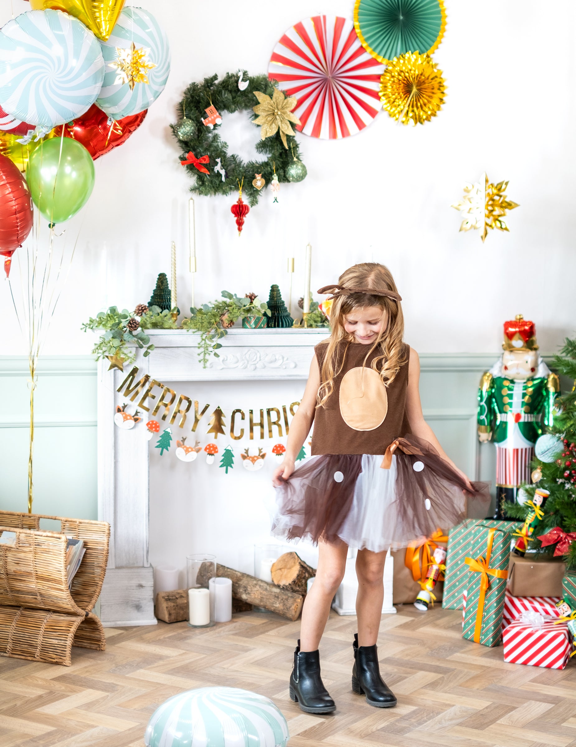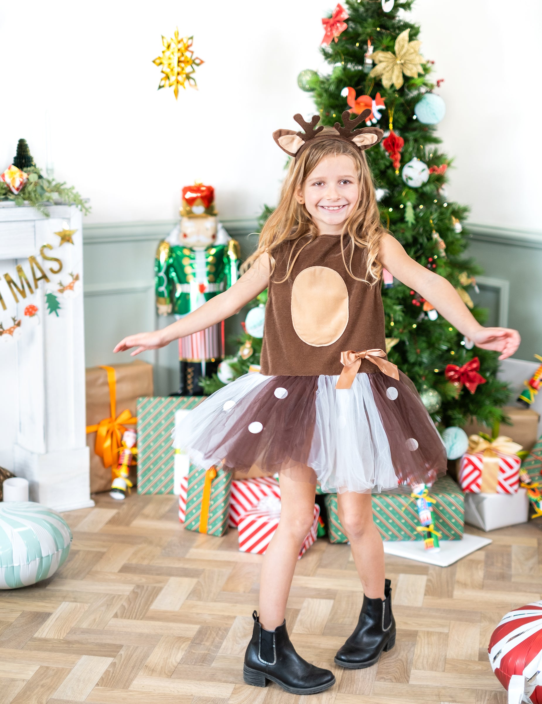K súprave je pridaná čelenka, ktorá ladí so šatami a je inšpirovaná parohmi a ušami... Vianočné soby.