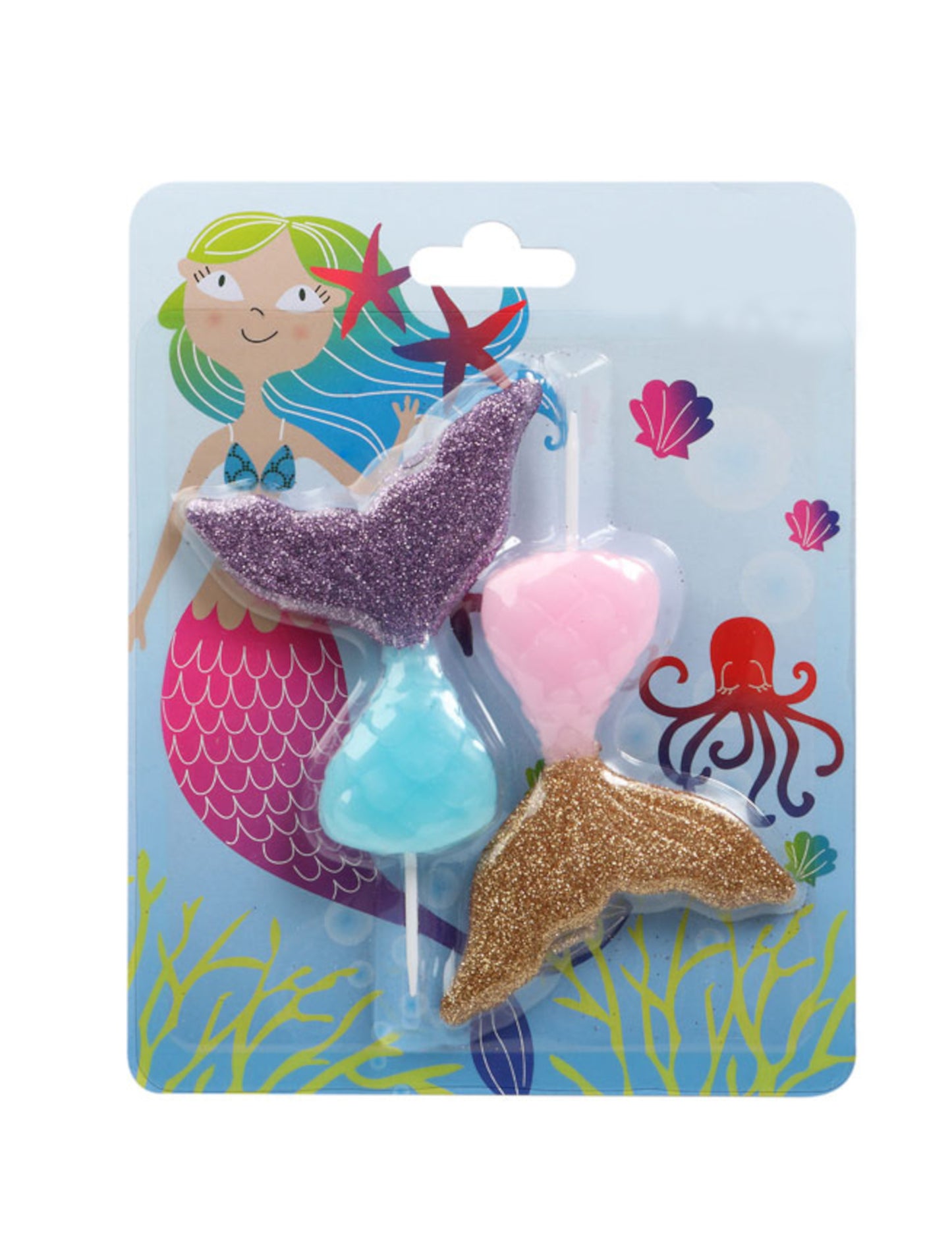 Táto šarža obsahuje 2 sviečky asi 17 x 14 cm. Tieto sviečky predstavujú chvosty sirény v rôznych farbách. A pre ešte väčšiu farbu sú plutvy týchto sviečok trblietavé. Perfektné sviečky na oslavu narodenín vašej dcéry na téme Sirens