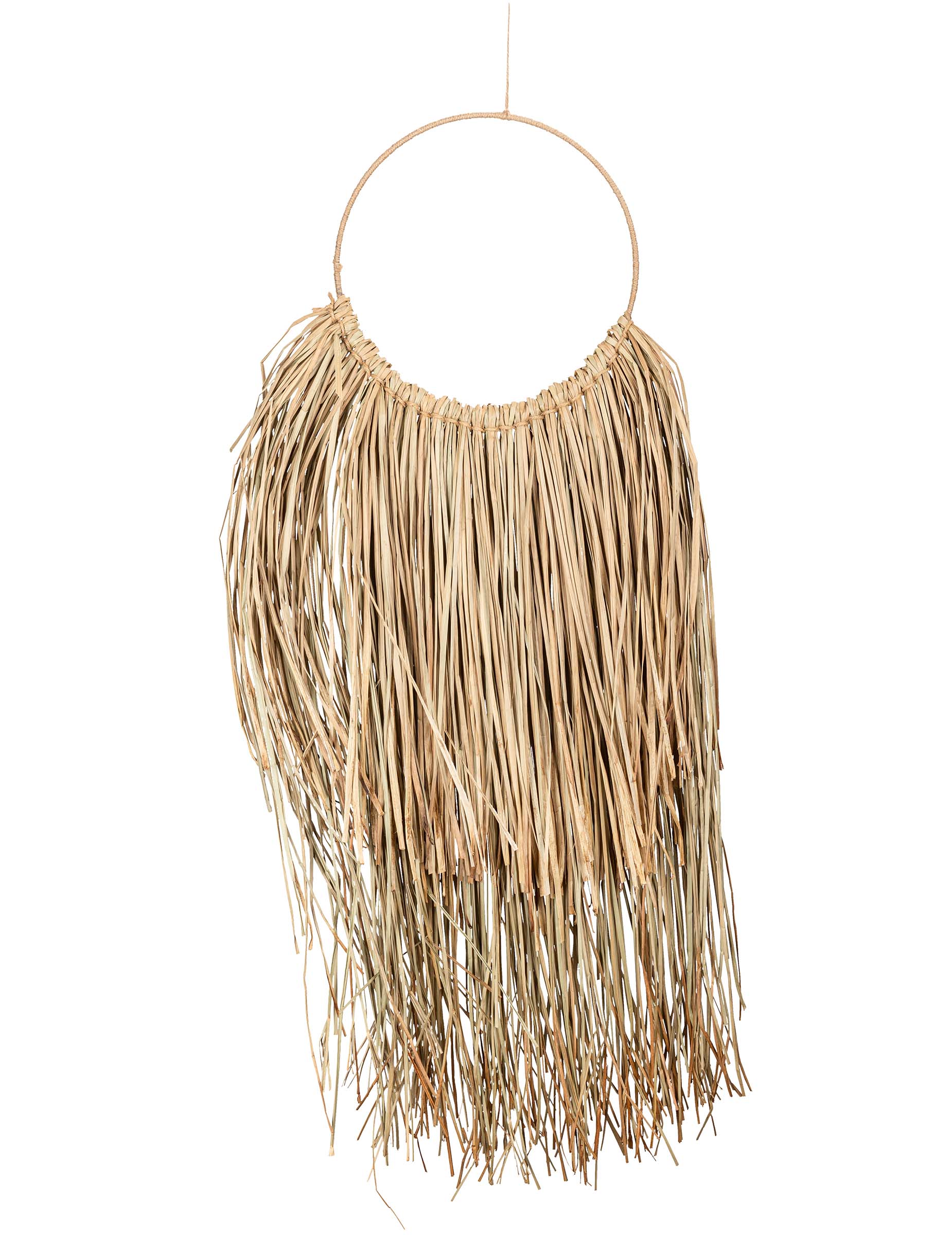 Vylepšite si týmto priestor pozastavenie inšpirovaný lapač snov tradičný. Skladá sa z centrálneho kruhu zdobeného prírodnými rafiovými vláknami a môže sa pochváliť veľkorysými rozmermi 28 cm 90 široký cm Zhora. Toto rafiová dekorácia nájde si svoje ideálne miesto u vás doma alebo vonku na vytvorenie bohémska atmosféra autentické, ideálne pre manželstvo alebo letný festival.