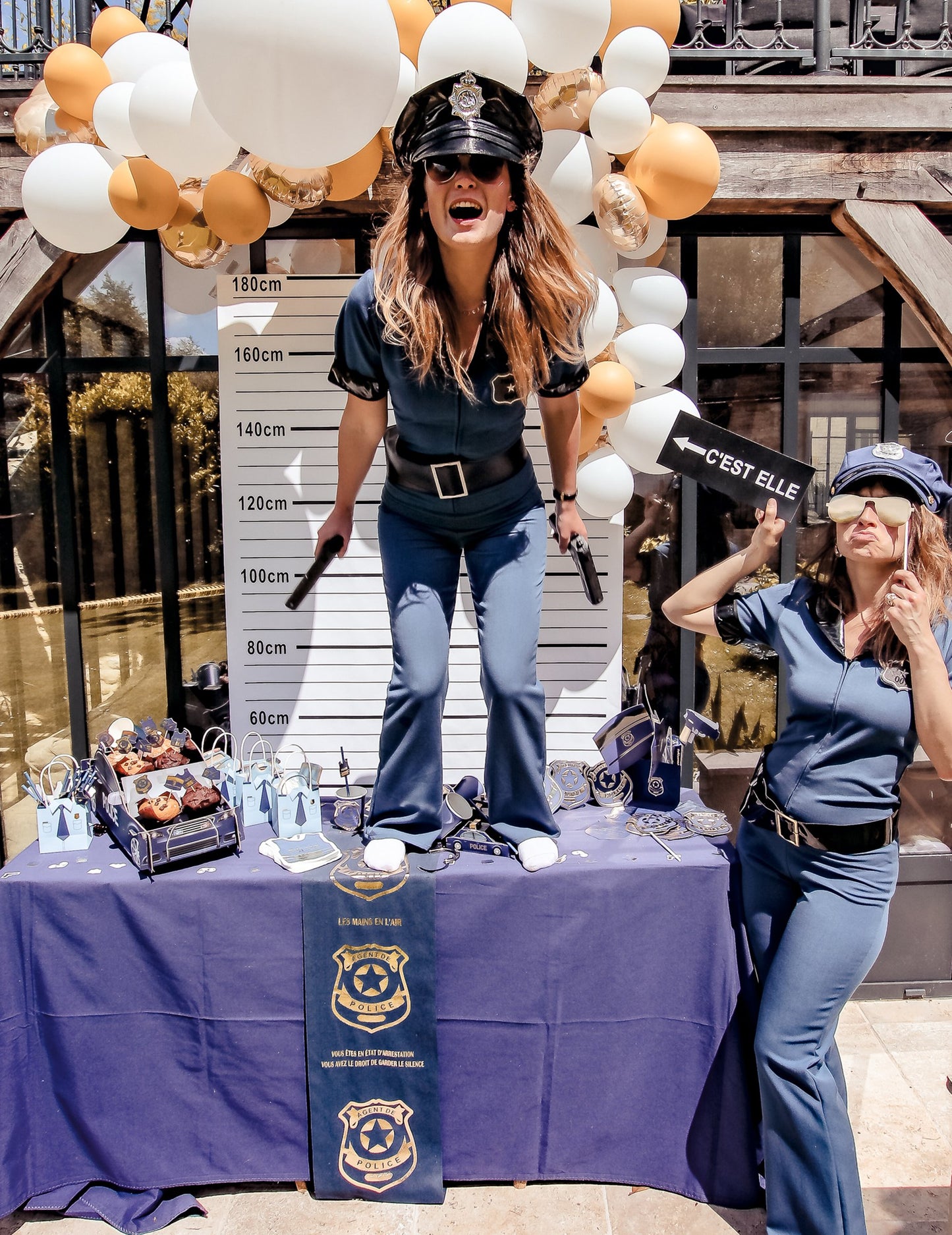 Tento stolový bežec je námornícky modrý s kresbou zlatého policajného odznaku. Má tiež frázy „ruky vo vzduchu“ a „Ste v zatknutí, máte právo zostať ticho“. Meria približne 3 m x 28 cm. Dokončite dekoráciu svojho stola na tému polície pri príležitosti narodenín!