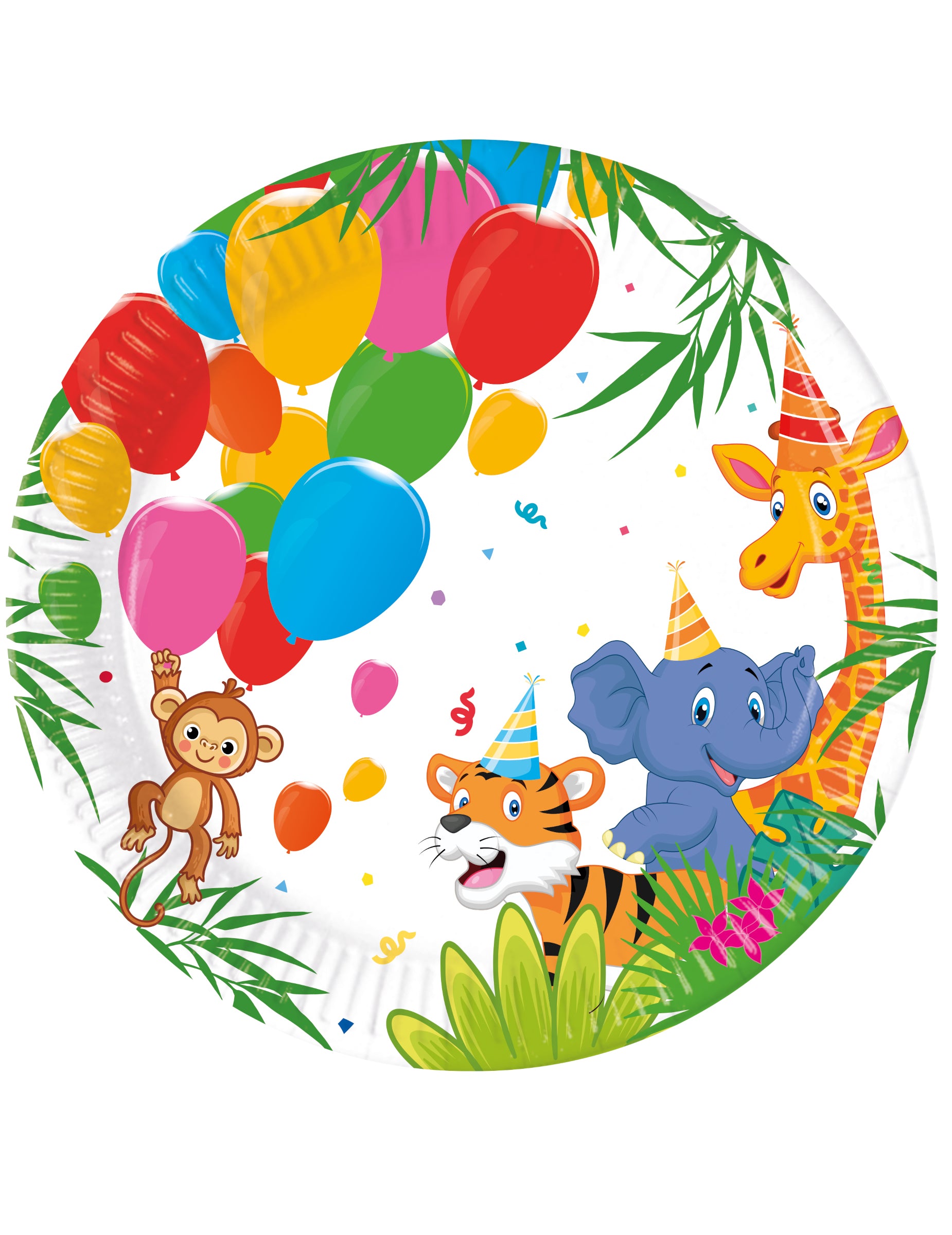 8 papierových tanierov s balónmi z džungle 20 cm zvieratá