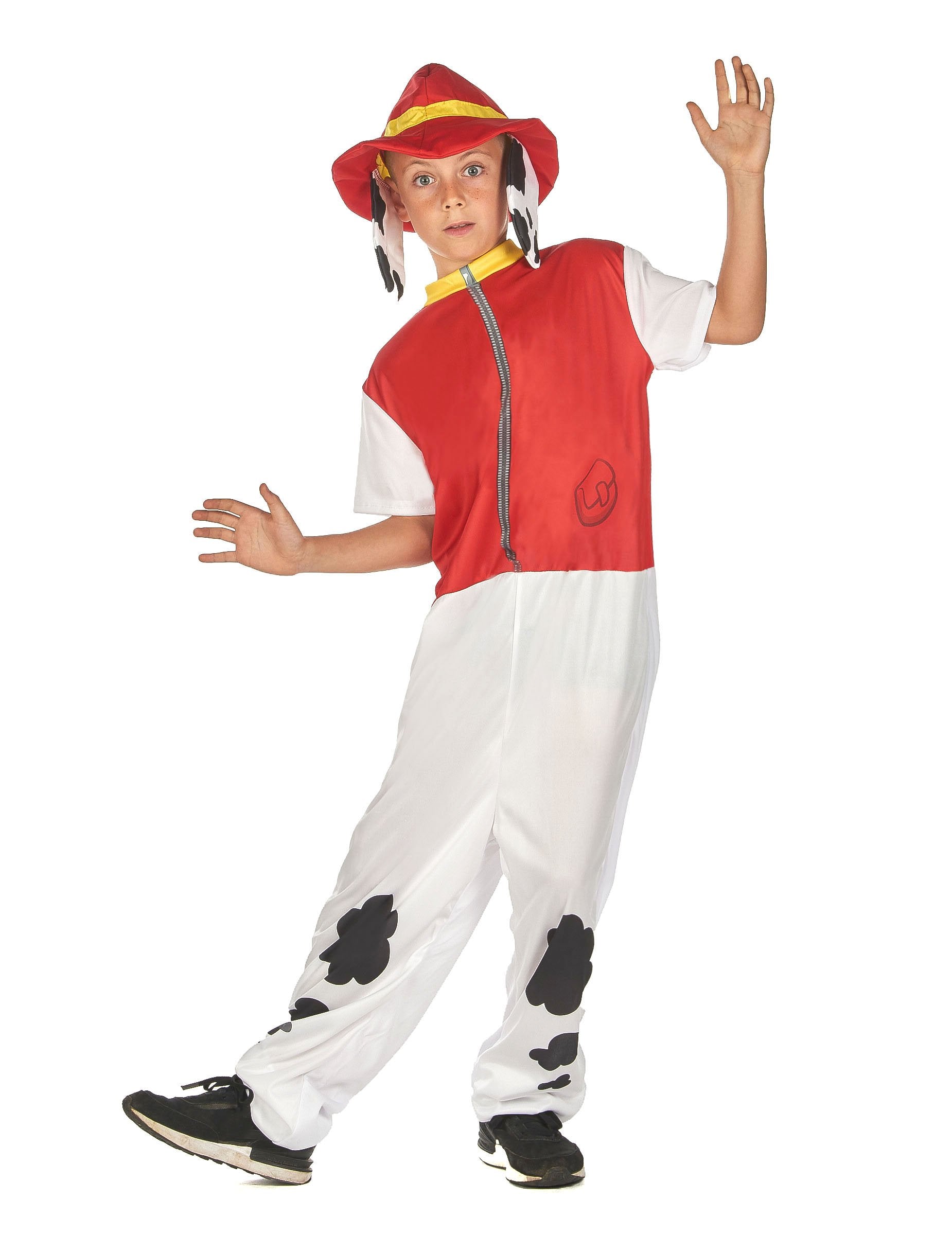 Súčasťou je aj klobúk. Je červenej farby so žltým pásikom okolo, s dvoma veľkými bielymi a čiernymi ušami. Budete na nerozoznanie od slávneho hasiča z animovaného seriálu!