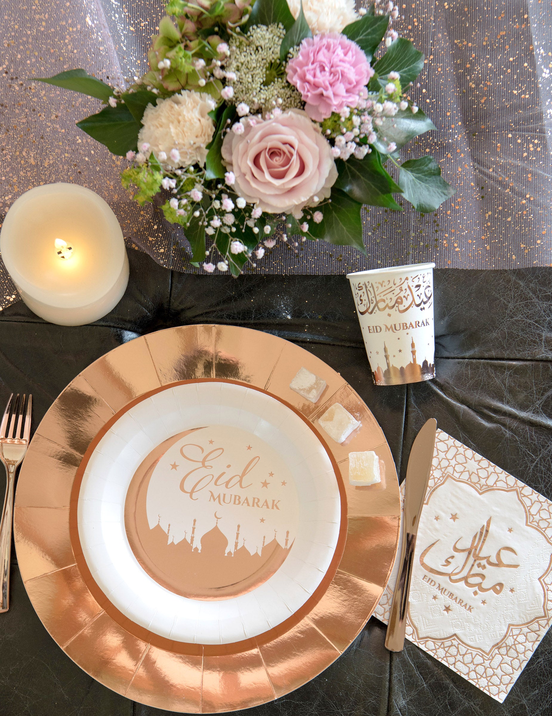 Majú úžasnú ružovo-zlatú povrchovú úpravu so zvýrazneným nápisom „Eid Mubarak".