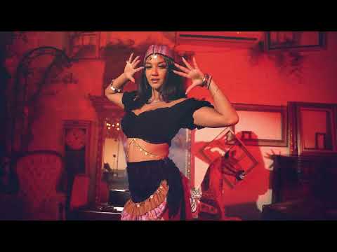 Crop top kostýmu je čiernej farby a je zdobený zlatými mincami.
