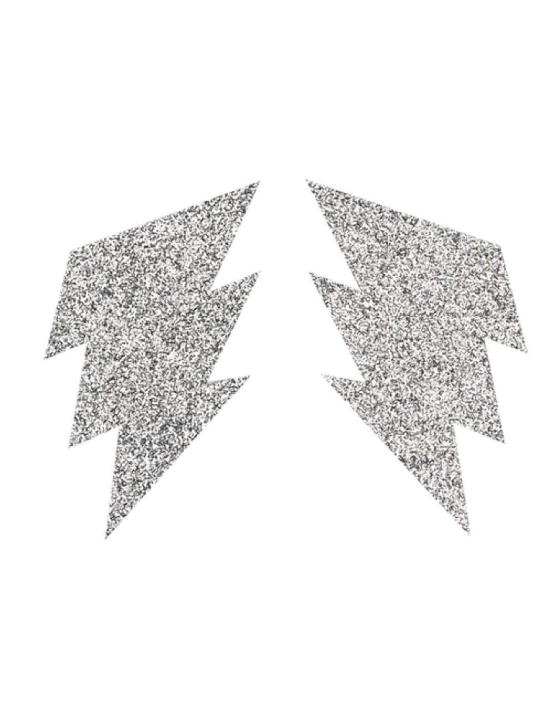 Pár strieborných trblietavých návlekov na bradavky s bleskom