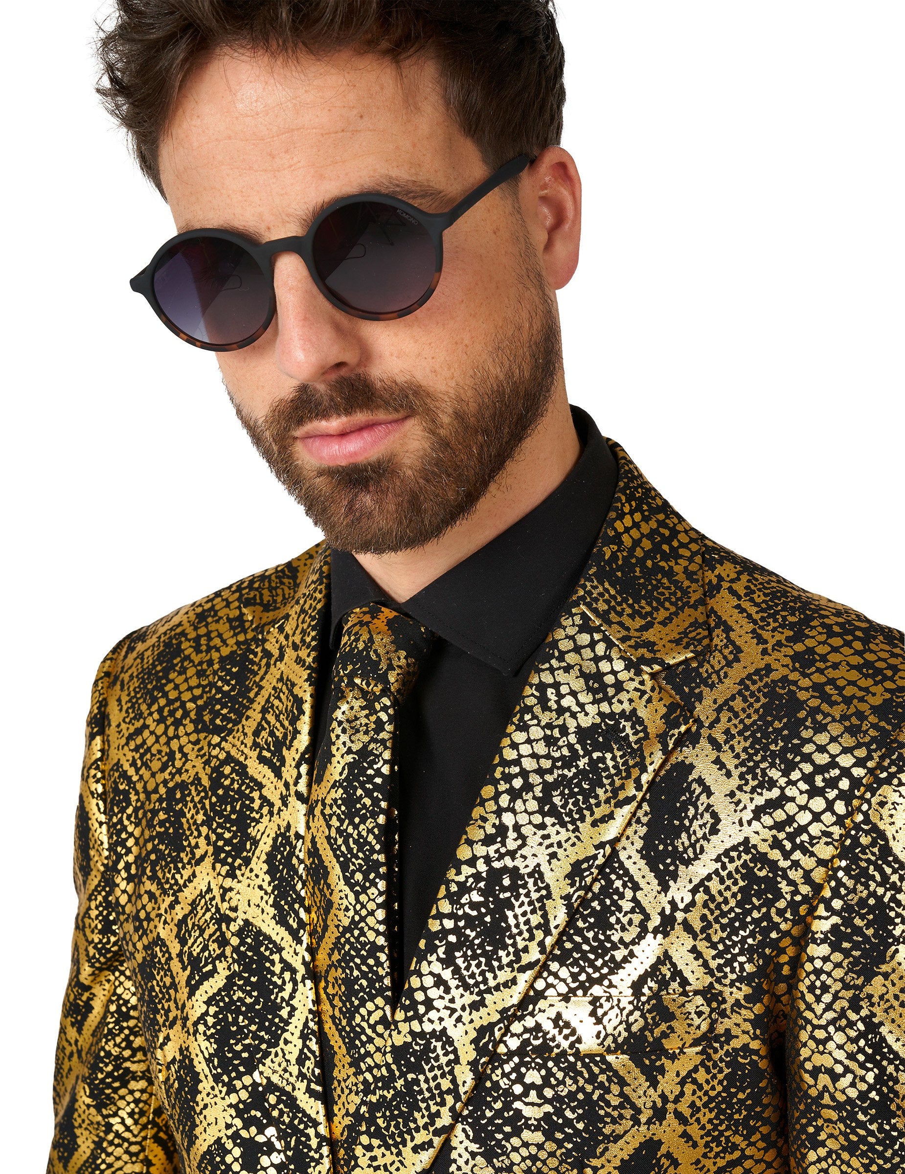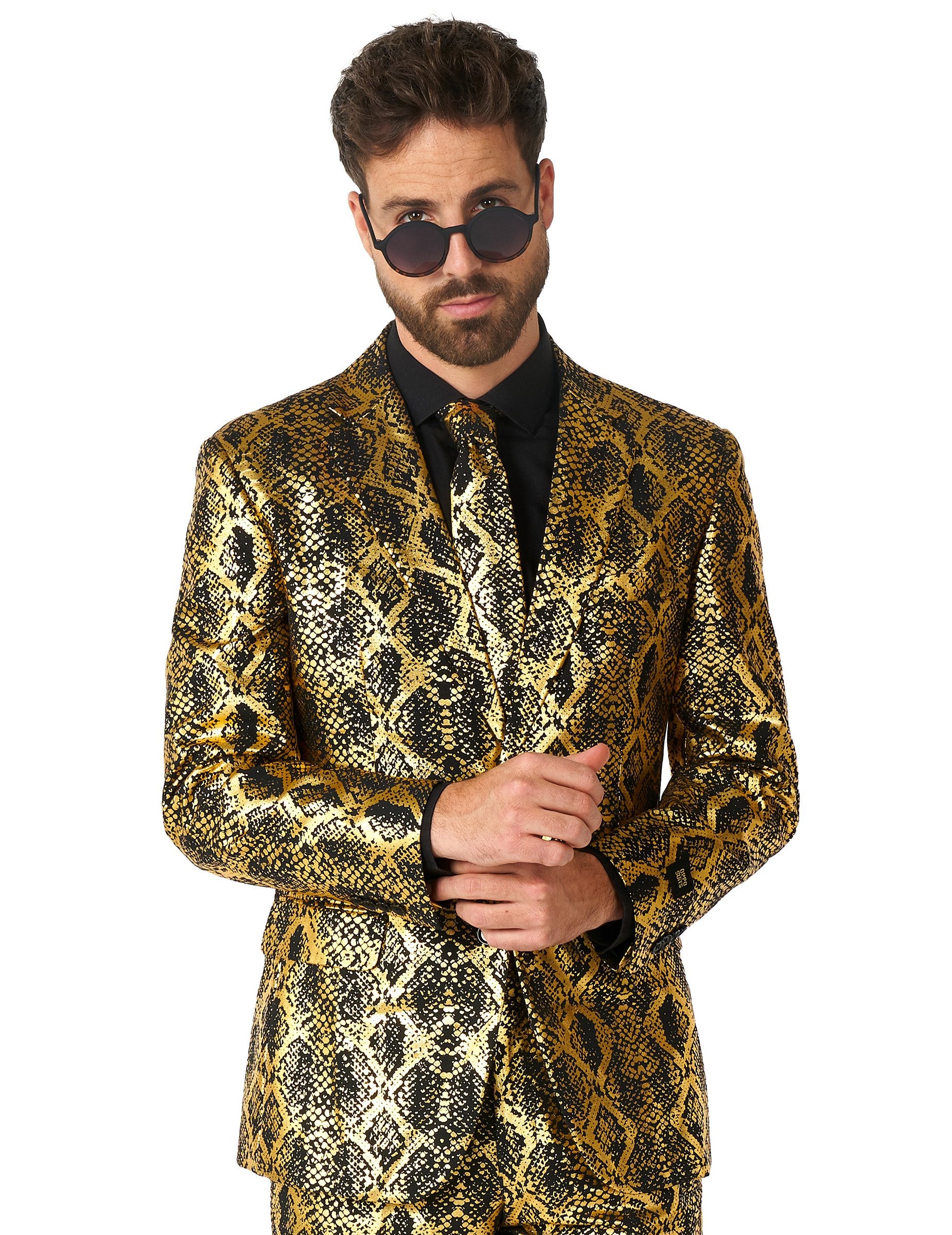Tento kostým pre lesklý had pre dospelých je pod oficiálnou licenciou naopak. Zahŕňa bundu, nohavice a kravatu. Bunda s dlhou štrbinou obsahuje 2 tlačidlá ako centrálne uzavretie, ako aj 4 interiérové vrecká. Kostýlené nohavice obsahujú 2 gombíkové zadné vrecká, 2 bočné vrecká sprevádzané zipsom mušky. Celý kostým je vyrobený v kvalitnej látke s hadími váhami s šumivou čiernou a zlatou farbou. Vyplňte svoj oblečenie týmto kostýmom pri príležitosti karnevalu alebo na nový rok!
